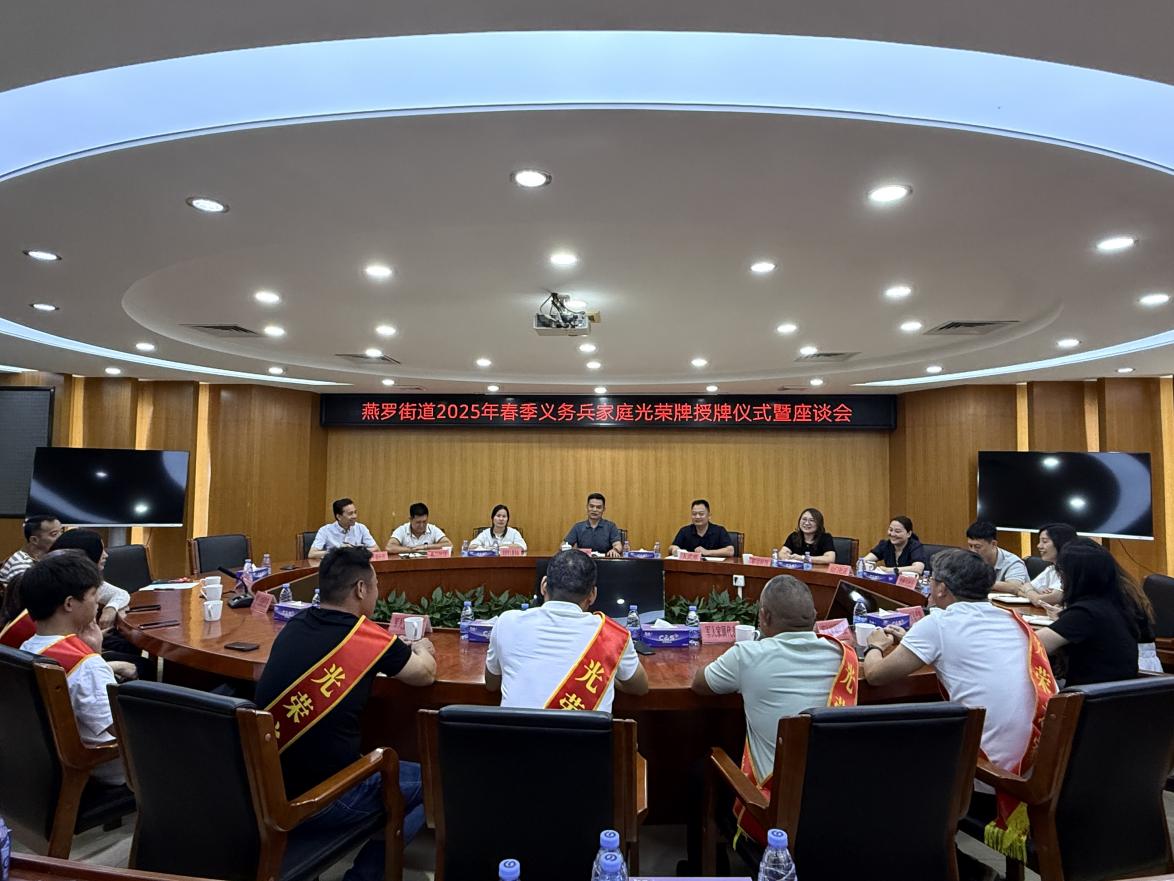深圳新闻网2025年5月29日讯(记者 何静 通讯员 罗翊祯 徐雯婷)为弘扬拥军优属优良传统,营造“一人参军、全家光荣”的浓厚社会氛围,近日,燕罗街道人民武装部在街道办举行2025年春季义务兵家庭光荣牌授牌仪式暨座谈会。街道党工委委员宋涛、人武部主要负责人吴健伟、各社区书记及分管委员、新兵军属代表等参加会议,共同见证这一光荣时刻。