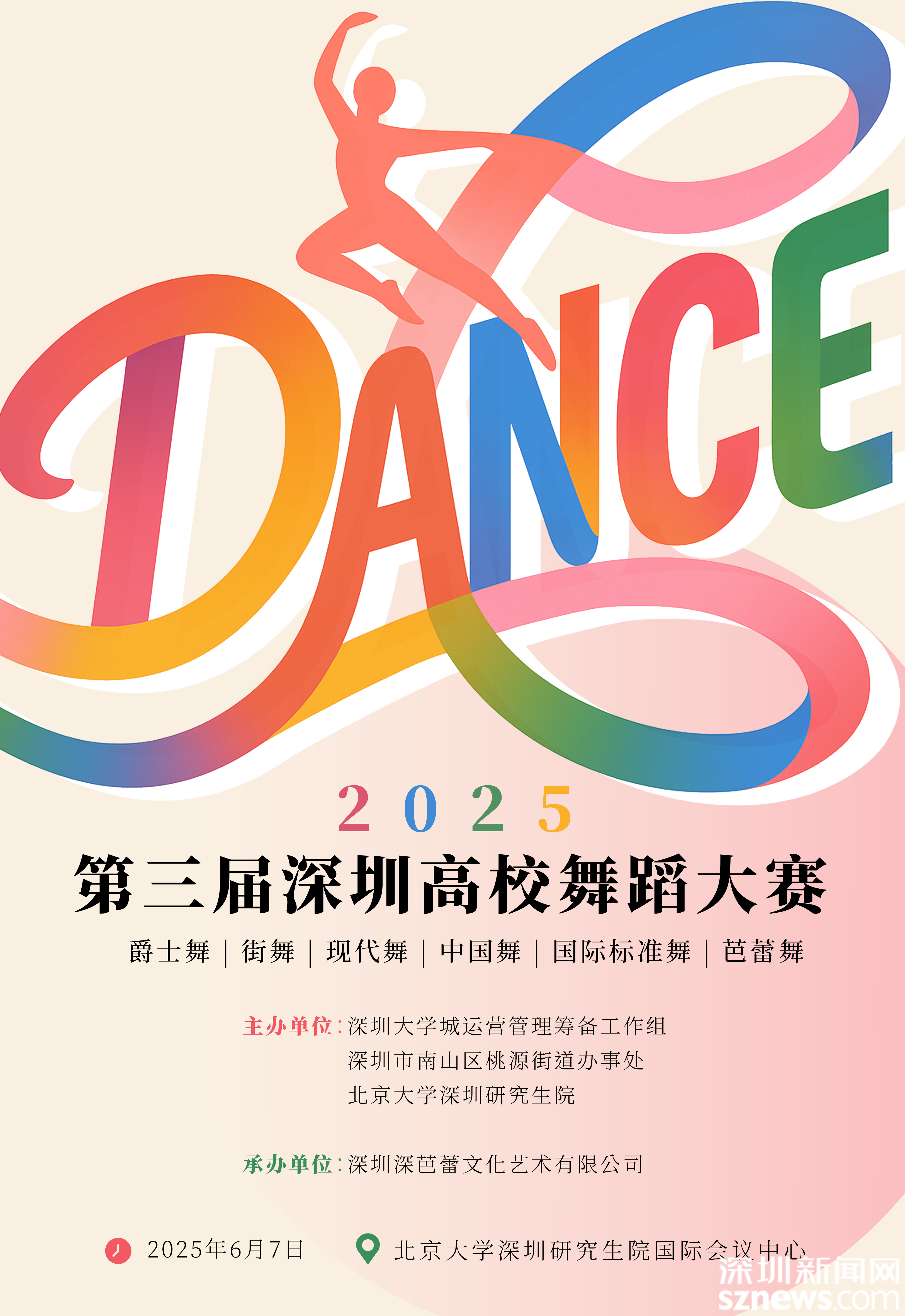 深圳新闻网2025年5月29日讯(记者 董非)当粤港澳大湾区的创新脉搏与青春律动激情碰撞,一场聚焦高校艺术力量的顶级盛宴即将震撼启幕!由深圳大学城运营管理筹备工作组、深圳市南山区桃源街道办事处、北京大学深圳研究生院联合主办,深圳深芭蕾文化艺术有限公司承办的 2025 第三届深圳高校舞蹈大赛,承载着推动科教文化融合的使命,将于6月7日 在北京大学深圳研究生院国际会议中心迎来巅峰对决,目前决赛筹备已进入白热化阶段,静待全城瞩目!