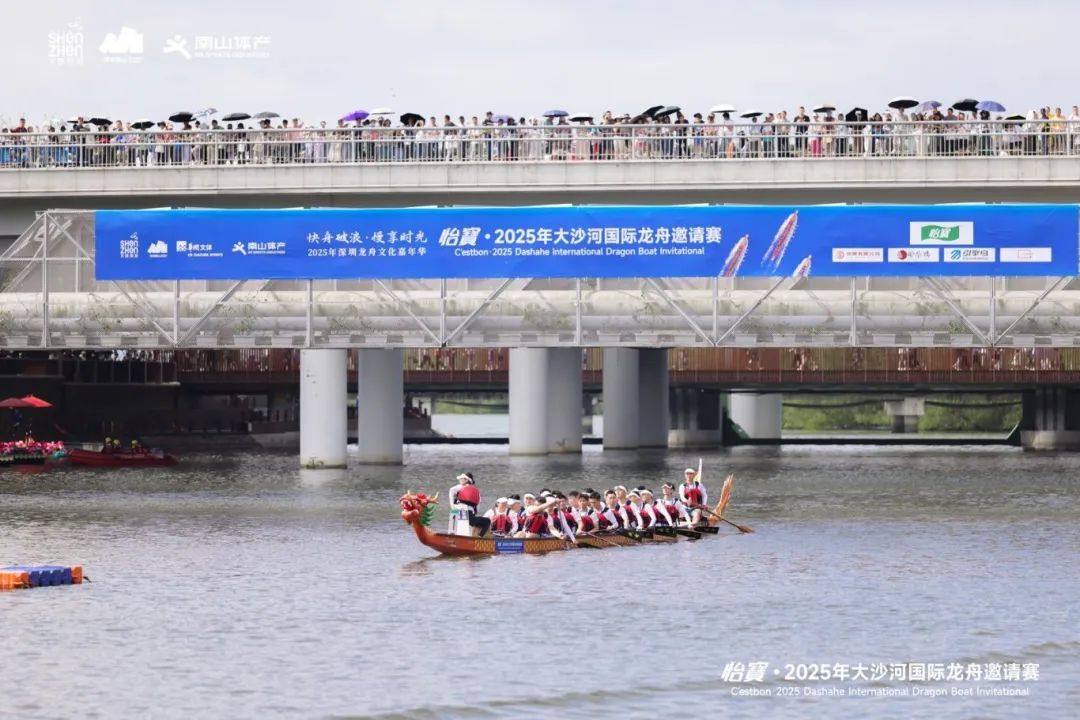 深圳新闻网2025年5月31日讯(记者 胡少华 谢菲艳)鼓点炸响江面,千桨劈开热浪!5月31日上午,2025年大沙河国际龙舟邀请赛在深圳市南山区大沙河长廊激情开桨。来自粤港澳大湾区及国际的24支龙舟队,约600名选手齐聚碧波荡漾的大沙河,在22人龙舟500米直道竞速中展开激烈角逐。鼓声雷动,呐喊震天,早早聚集两岸的观赛市民为选手们加油助威,现场气氛热烈非凡。