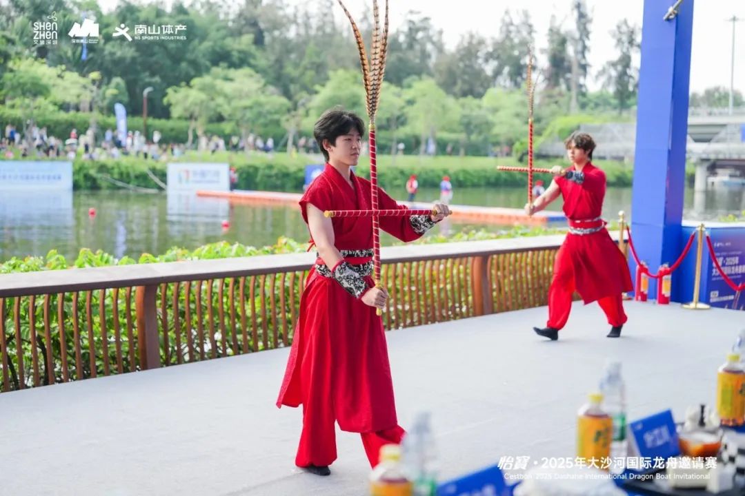 除龙舟竞渡外,鼓乐舞狮、龙舟拔河、水上特技与国潮歌舞等精彩节目也轮番上演,共同构建起“水陆空”三位一体的沉浸式观赛体验,让观众全方位感受到湾区文化的独特魅力。