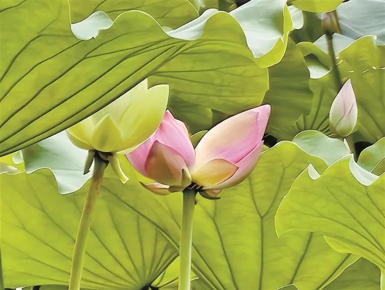 ● 罗湖:近日,洪湖公园两朵并蒂莲绽放,吸引了众多市民游客前来观赏。