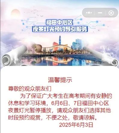 ● 6月6日、7日,深圳市民中心灯光秀暂停表演。