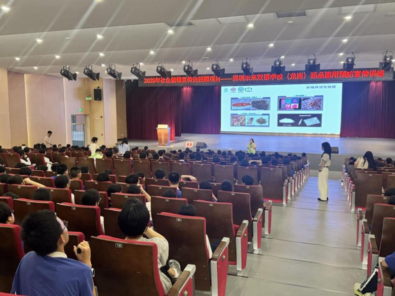 深圳新闻网2025年6月5日讯(记者 张凡 通讯员 邱玲)为切实增强青少年群体安全用药意识,预防药物滥用行为,筑牢青少年拒毒防毒防线,2025年6月4日,在深圳市市场监督管理局、深圳市药物警戒和风险管理研究院、深圳市医疗器械行业协会指导下,由深圳市禁毒社会工作与志愿服务协会主办、龙岗区禁毒委员会办公室大力支持下,龙岗街道在深圳未来双语学校组织开展了一场主题鲜明、内容丰富的青少年药物滥用预防宣传讲座。活动吸引了600余名学生现场参与。