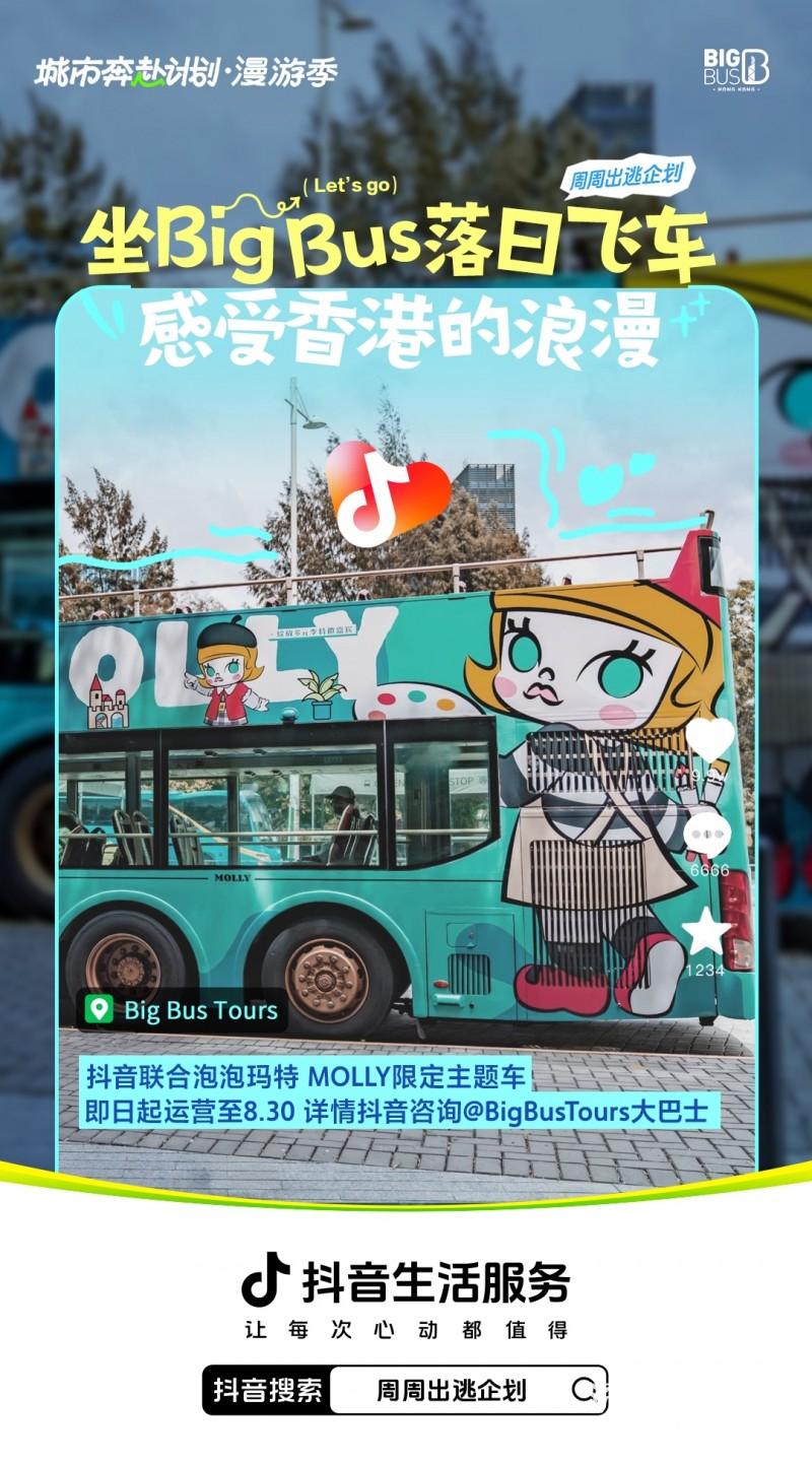 在线下,抖音生活服务还联合BIGBUS共同打造了出逃BIGBUS落日飞车。这辆BIGBUS落日飞车涵盖三条线路,途经香港的众多热门景点,为游客们带来别具一格的游览体验。作为城市奔赴计划的一部分,“周周出逃企划”也正式登陆香港。