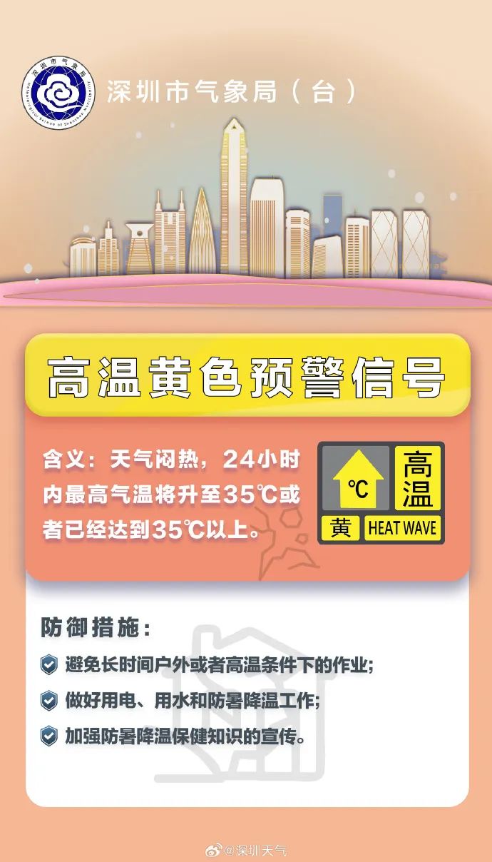 深圳今日多云间晴天,局部有短时(雷)阵雨;气温27-34℃,中北部和人口密集区最高气温可达35℃或以上;南风2-3级;相对湿度55%-85%。