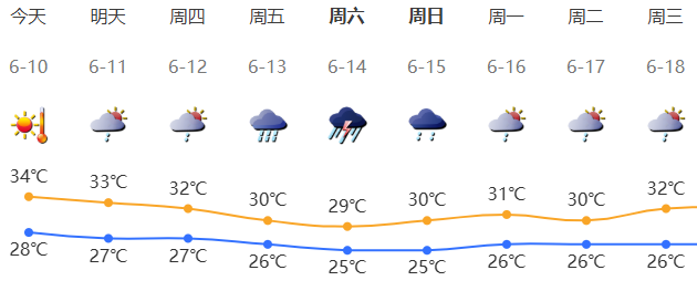 深圳今日晴天间多云,局地偶有短时(雷)阵雨;气温28-34℃;东南风2-3级;相对湿度60%-80%。