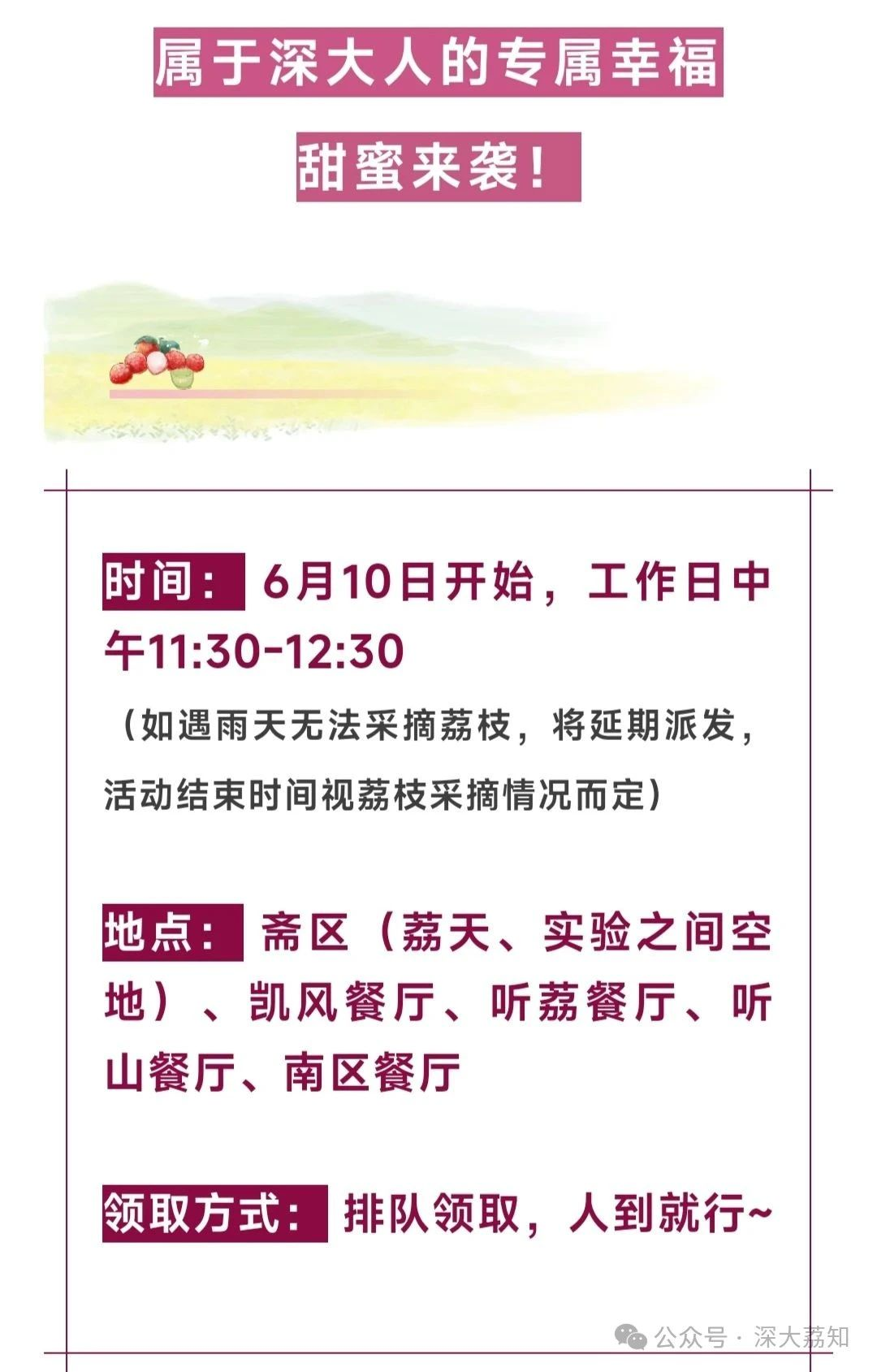 ● 2025深大粤海派荔枝啦!6月10日开始,排队即可领取。