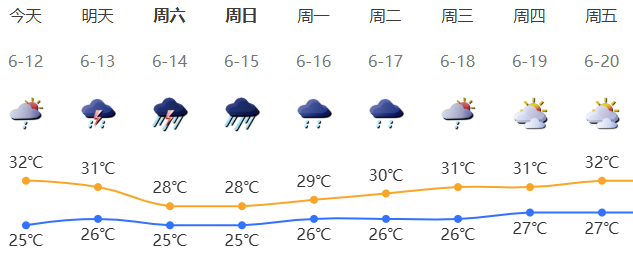 深圳今日多云间阴天,有(雷)阵雨,部分时间雨势较大;气温25-32℃;东风3-4级,沿海、高地和海区阵风7-8级;相对湿度70%-95%。