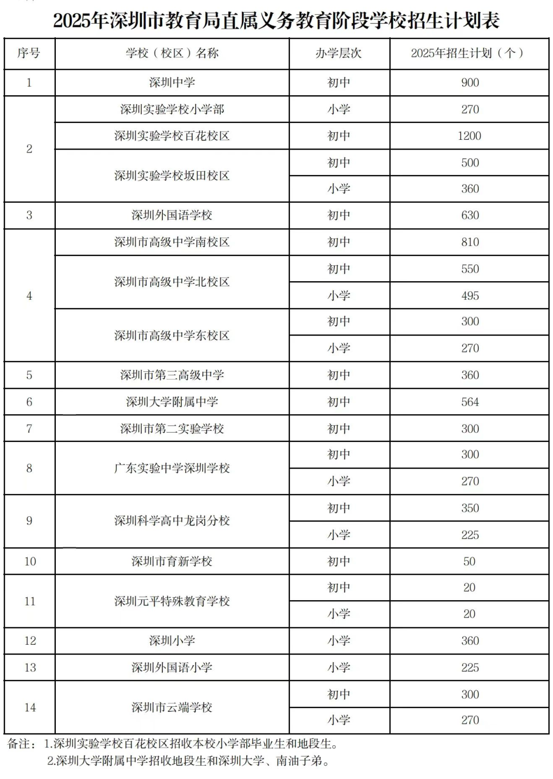 ● 近日,深圳市教育局发布了2025年市教育局直属学校义务教育阶段招生计划的通知。