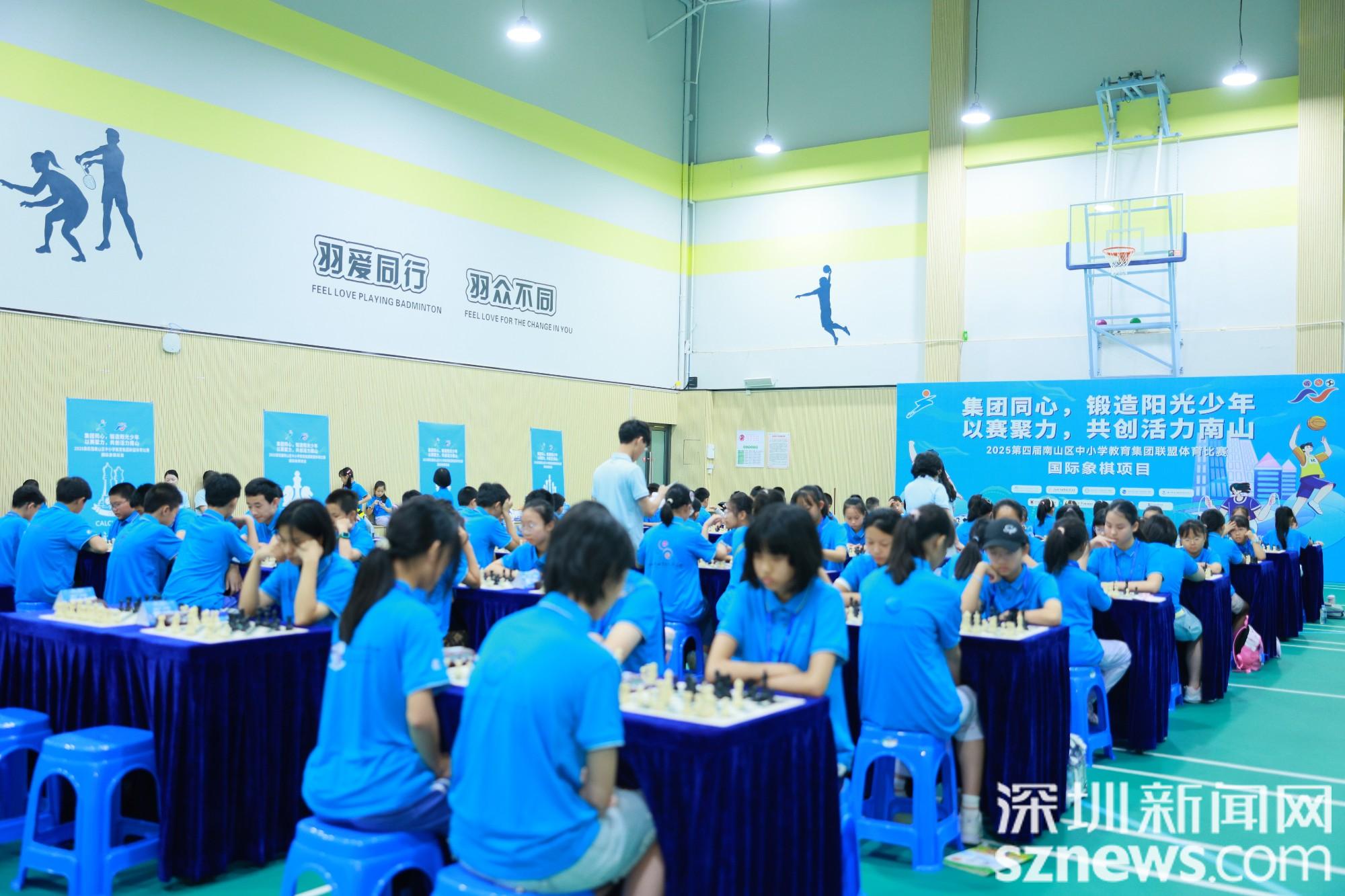 深圳新闻网2025年6月15日讯(记者 徐哲康 通讯员 张志梅)6月14日,第四届南山区中小学教育集团联盟体育比赛国际象棋项目在南山区第二外国语学校(集团)学府一小举行,小棋手们在黑白棋盘上展开激烈的智力博弈。