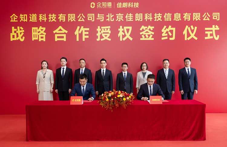 深圳新闻网2025年6月16日讯(记者 董非)6月15日,企知道与北京佳朗集团在京签署战略合作协议,企知道董事长夏华标和佳朗集团总经理李少珂出席签约仪式。佳朗集团将作为企知道科创大数据AI平台的服务商,全面代理“科创空间”与“商贸空间”产品,为京津唐企业创新转型提供系统化解决方案。