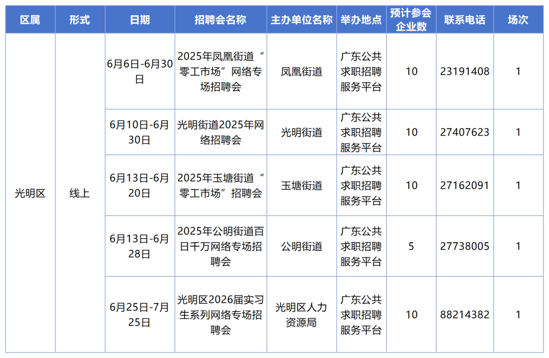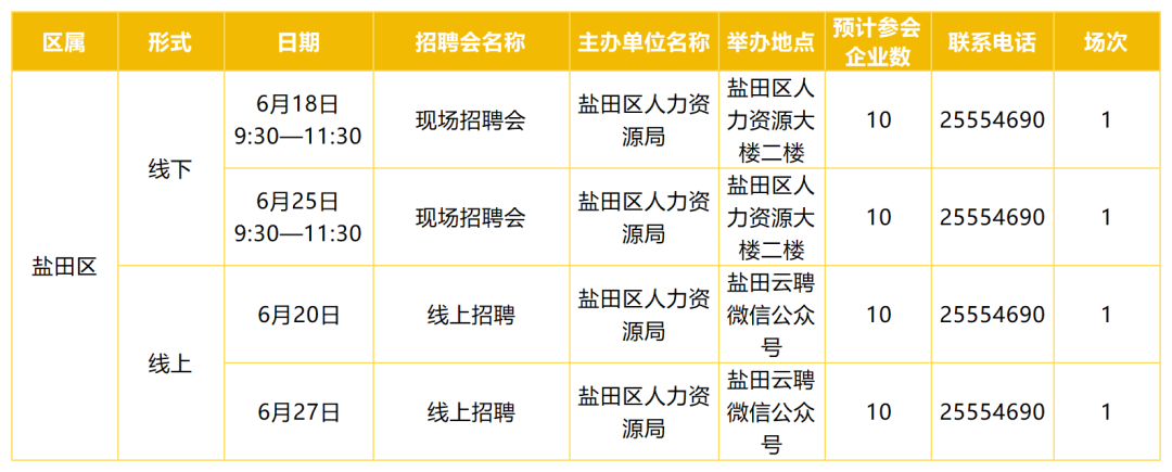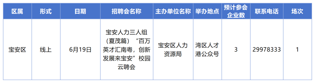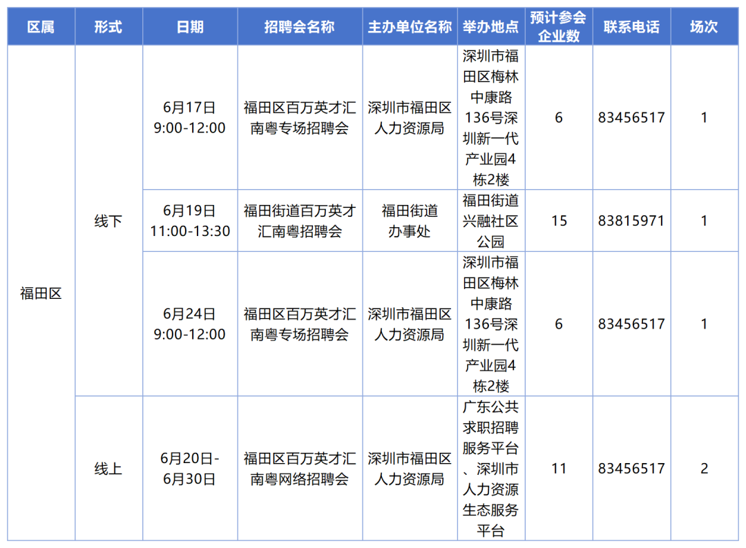 ●6月深圳各区招聘安排出炉,共有522家企业参与。