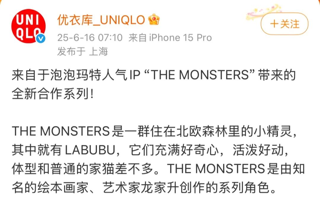 ●优衣库官宣和Labubu联名,上市销售时间为8月29日。