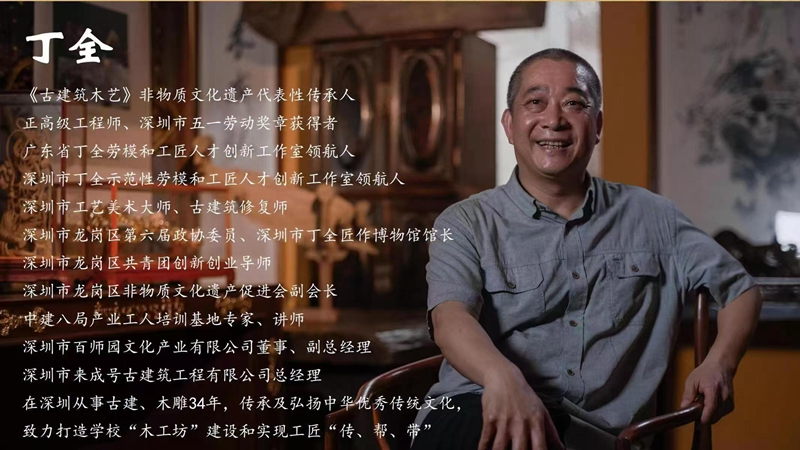 深圳新闻网2025年6月18日讯(记者 张凡 通讯员 关燕妮)在深圳这座以创新闻名的城市,有一位匠人用三十余年的坚守,为现代都市留存了一抹古韵。他是丁全,深圳市来成号古建筑工程有限公司技术总监、龙岗区非遗传承人,更被人称作古建筑修缮技艺的“活化石”。从木工学徒到正高级工程师,从专利发明人到非遗教育推广者,他的故事,是传统与现代交融的深圳缩影。
