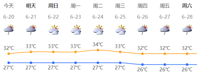 深圳今日多云,有(雷)阵雨;气温27-32℃;偏南风3级,沿海、高地和海区阵风6级左右;相对湿度70%-95%。
