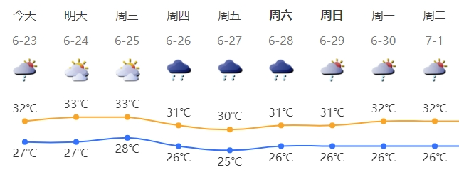深圳今日多云,有(雷)阵雨;气温27-32℃;南风2-3级,沿海、高地和海区阵风6级;相对湿度65%-95%。