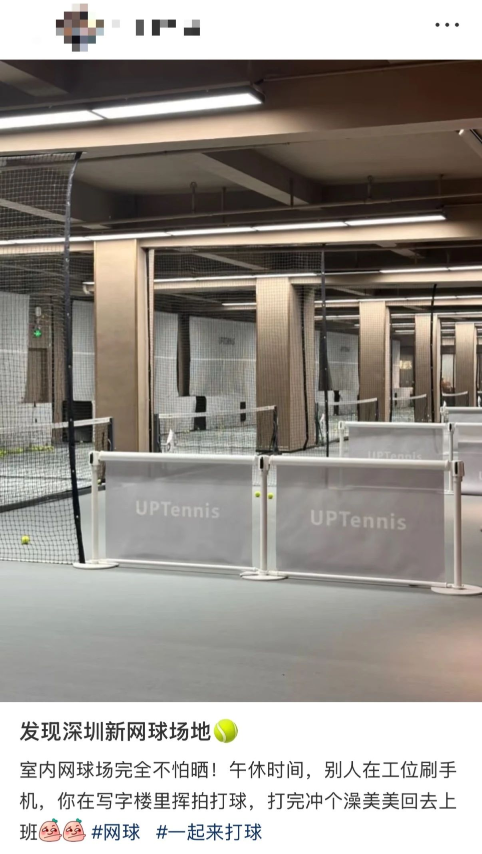● 福田:福田多丽工业区将网球场“搬”进写字楼,与传统印象中占地宽阔的露天球场不同,室内网球场有智能发球机、AI教练、迷你球场等。