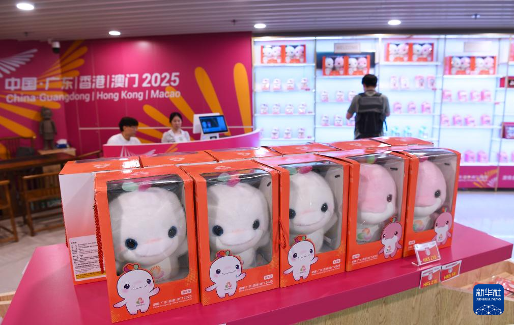 这是7月14日在香港西九龙站官方零售店拍摄的全运会吉祥物“喜洋洋”和“乐融融”。