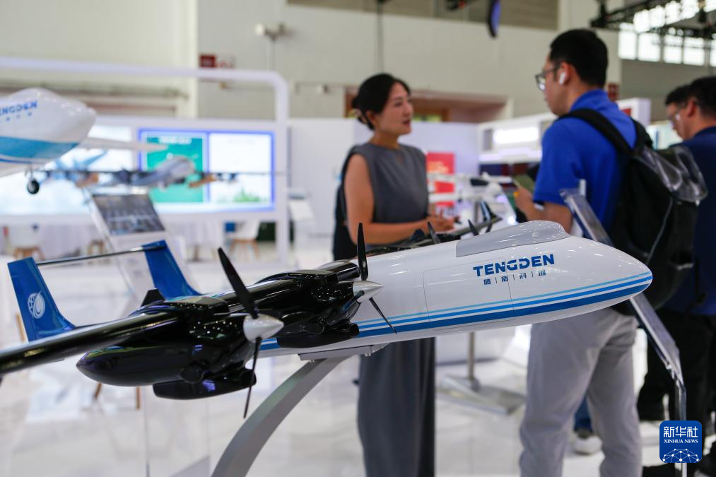 7月16日,参会者在先进制造链展区腾盾科创公司展位了解展出的无人机产品。新华社记者 丁洪法 摄