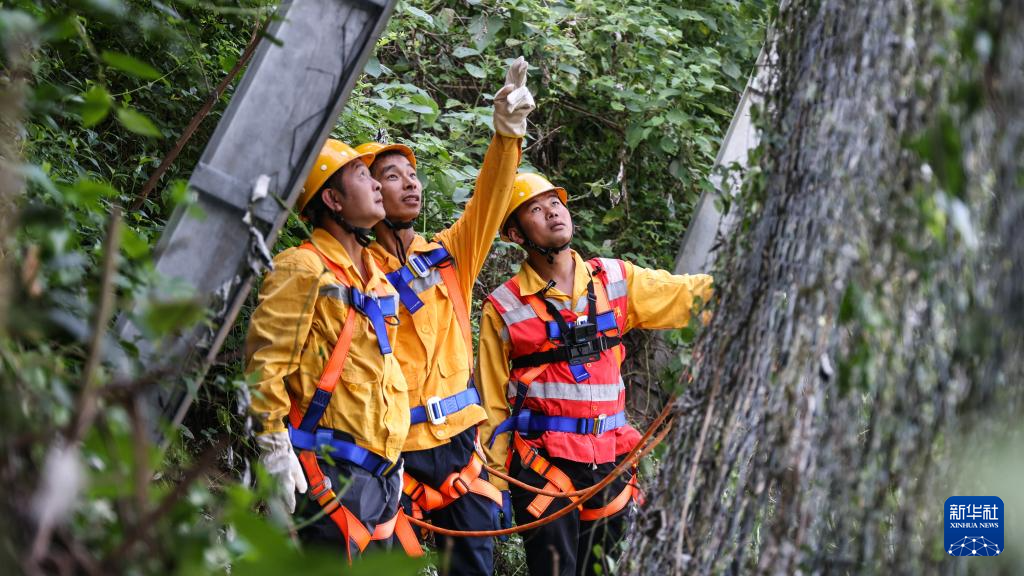 桥隧工人巡查被动网状态(7月15日摄)。新华社记者 张爱林 摄