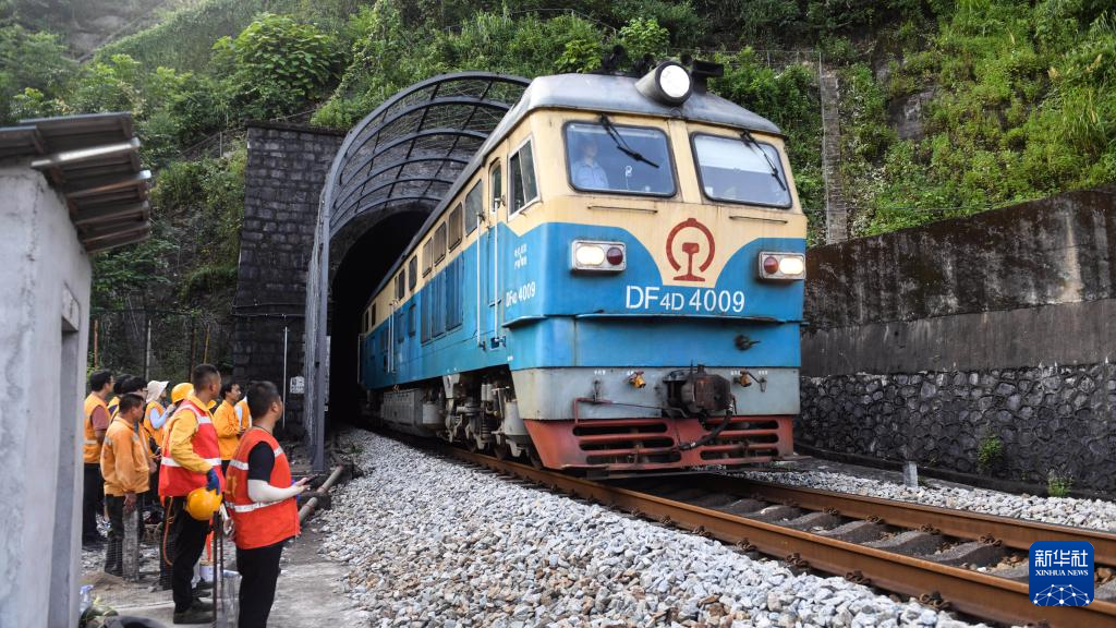 桥隧工人在隧道口立岗接车(7月16日摄)。新华社记者 张爱林 摄