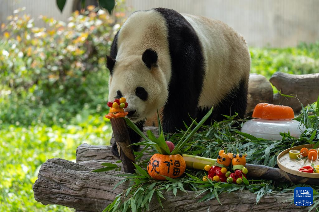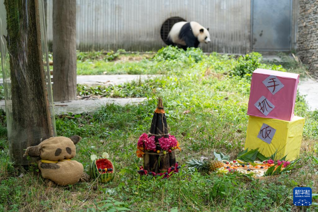 中国大熊猫保护研究中心卧龙神树坪基地精心准备的生日季丰容(7月17日摄)。新华社记者 薛晨 摄