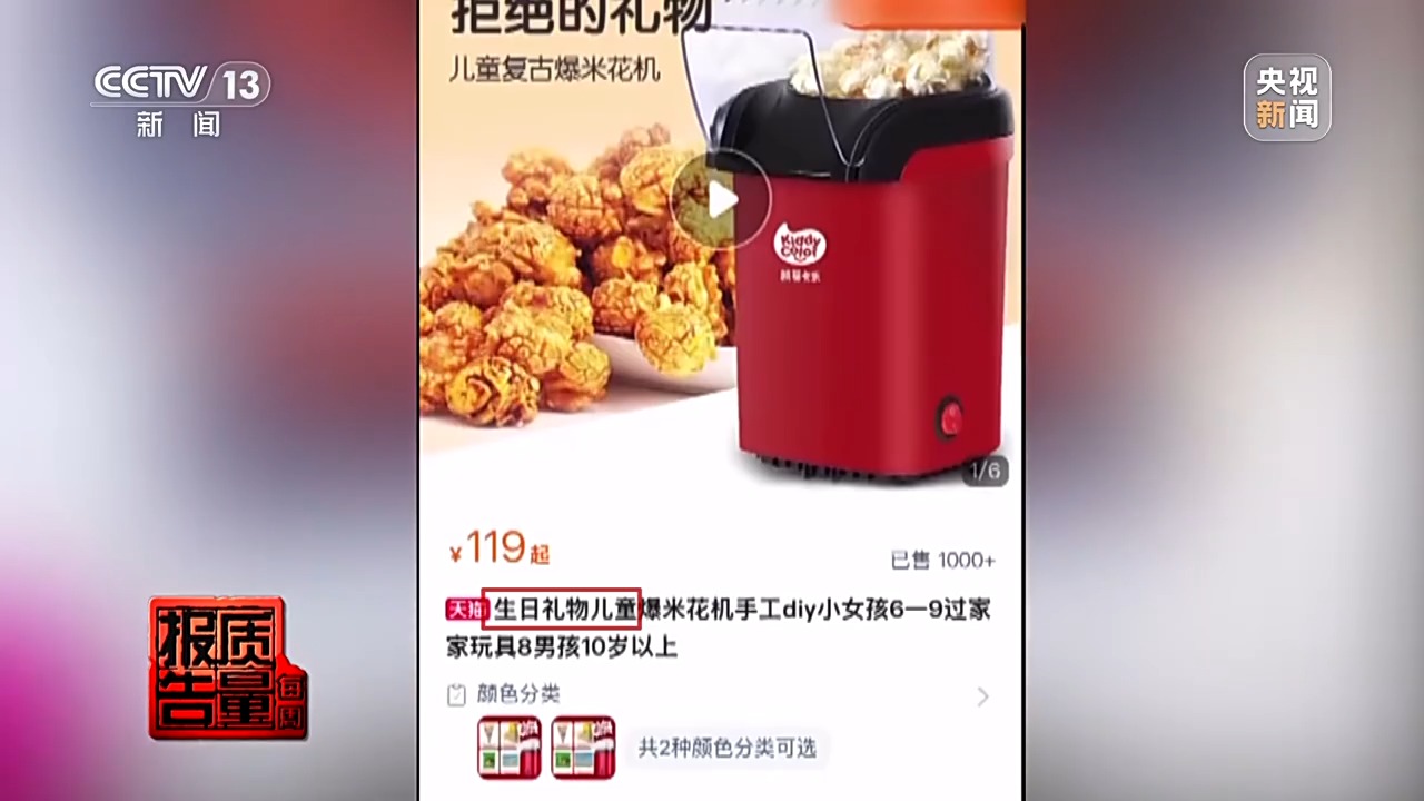 除了造型的玩具感,专家强调,这些产品在宣传标识上的误导性危害更大。记者在一些产品销售页面看到,显著位置都标有“儿童节礼物”“儿童过家家玩具”等字样,这款家用棉花糖机本来就是个普通家电用品,但在其网络销售页面上却标注了“儿童”字样。儿童一旦真当玩具玩耍,极易造成伤害。