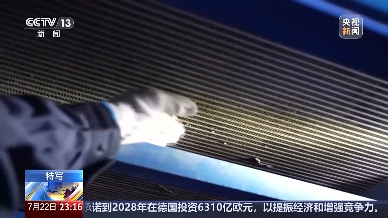 国家能源集团国华投资安徽当涂风电场场长、检修班长 姜坤:小王快过来看,散热片全堵住了。