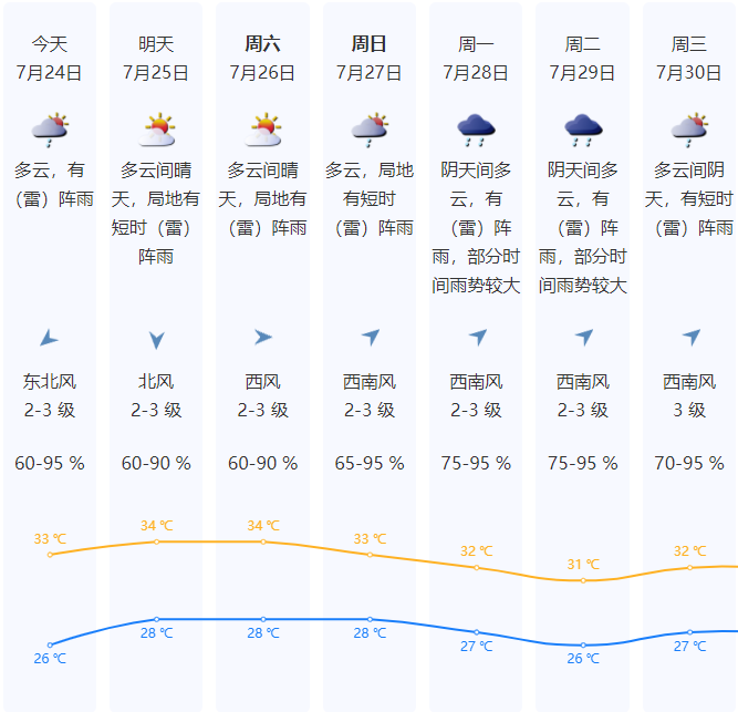 预计深圳25-27日多云间晴天,局地偶有短时(雷)阵雨,天转炎热;展望28-30日降雨增多,炎热缓解。