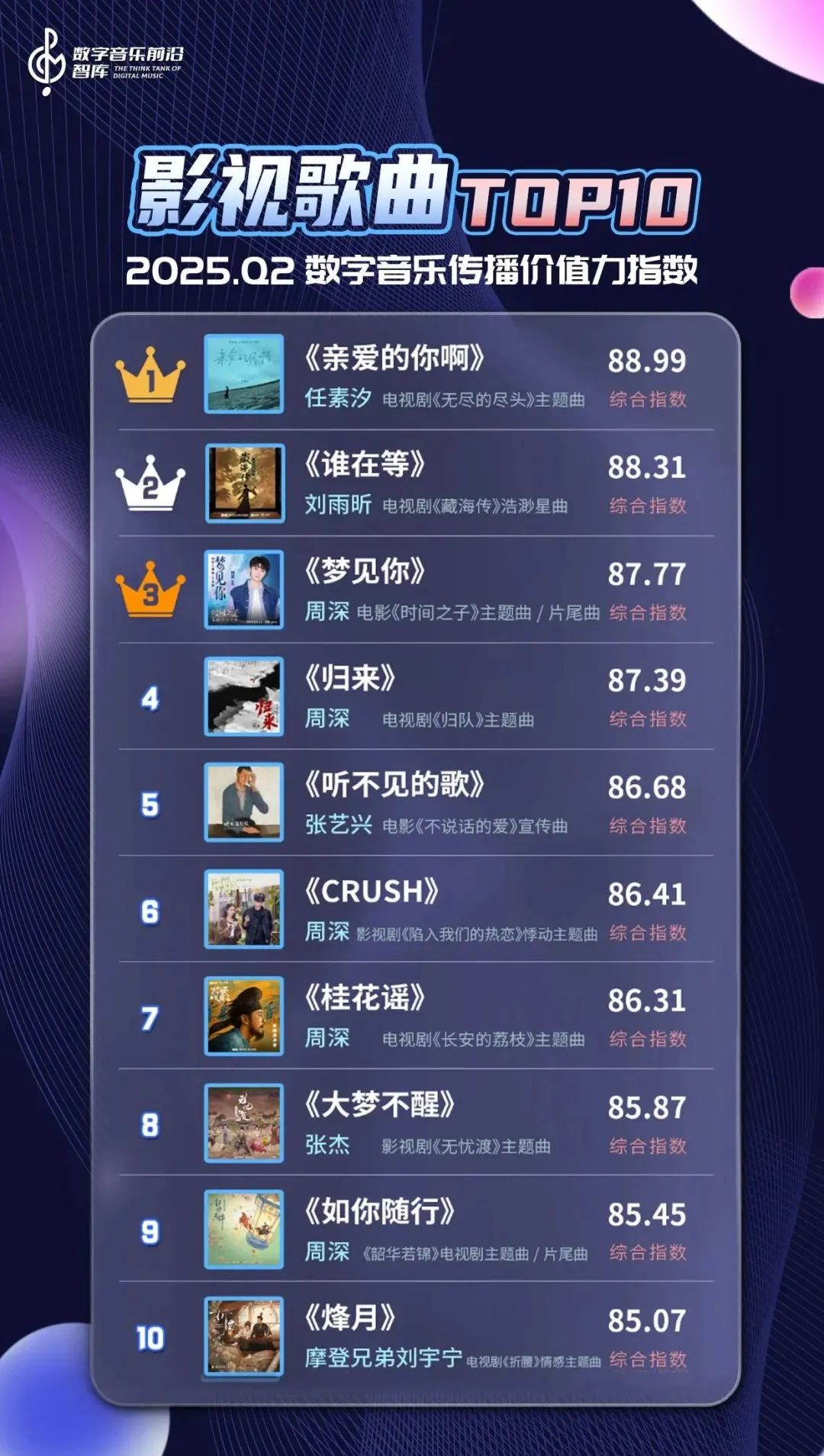 ●2025年Q2影视歌曲传播价值力指数榜发布。