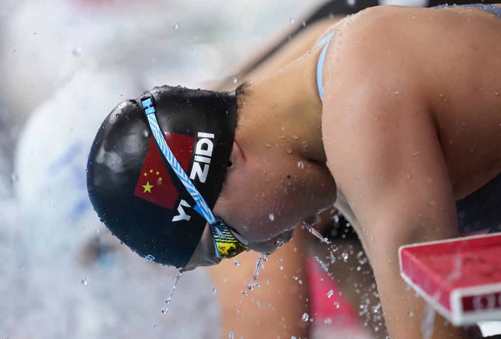 ↑7月27日,中国选手于子迪在世界游泳锦标赛游泳女子200米混合泳半决赛前。新华社记者 伍志尊 摄