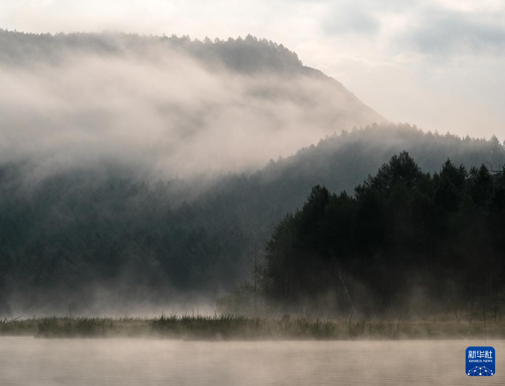 这是7月28日在内蒙古兴安盟阿尔山市乌苏浪子湖拍摄的晨雾。