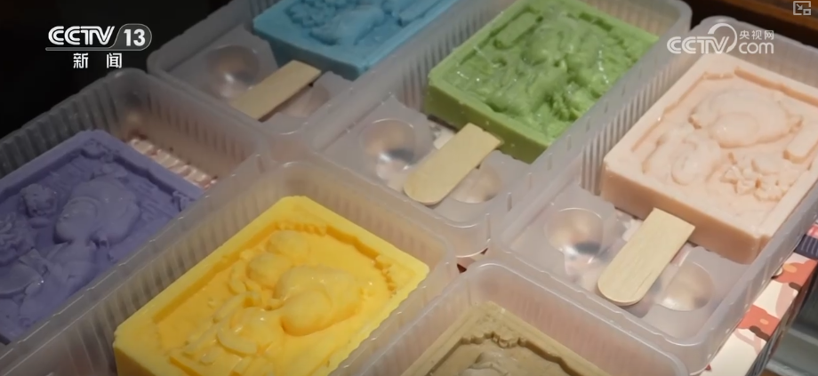 在这里,以标志性古建为灵感的文创雪糕,凭借不同口味和造型,吸引了众多游客前来拍照打卡,在炎炎夏日成为消暑解渴的“清凉伴侣”。