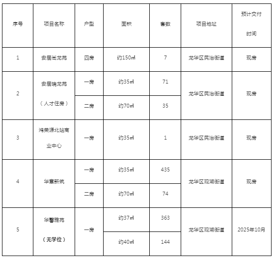 ● 龙华:第二批面向龙华区重点企业定向配租住房通告已发布,本次房源共5个项目,1130套,最低租金低至24元/月/㎡。