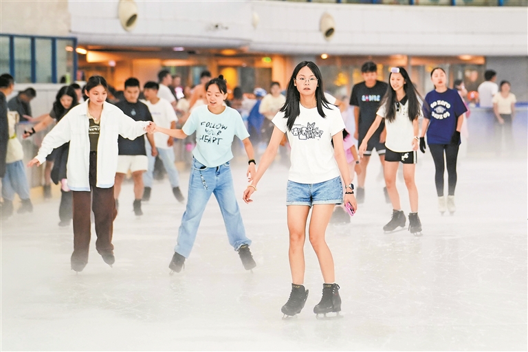炎炎夏日,市民游客热衷室内溜冰滑雪。 深圳晚报记者 严文婷 摄