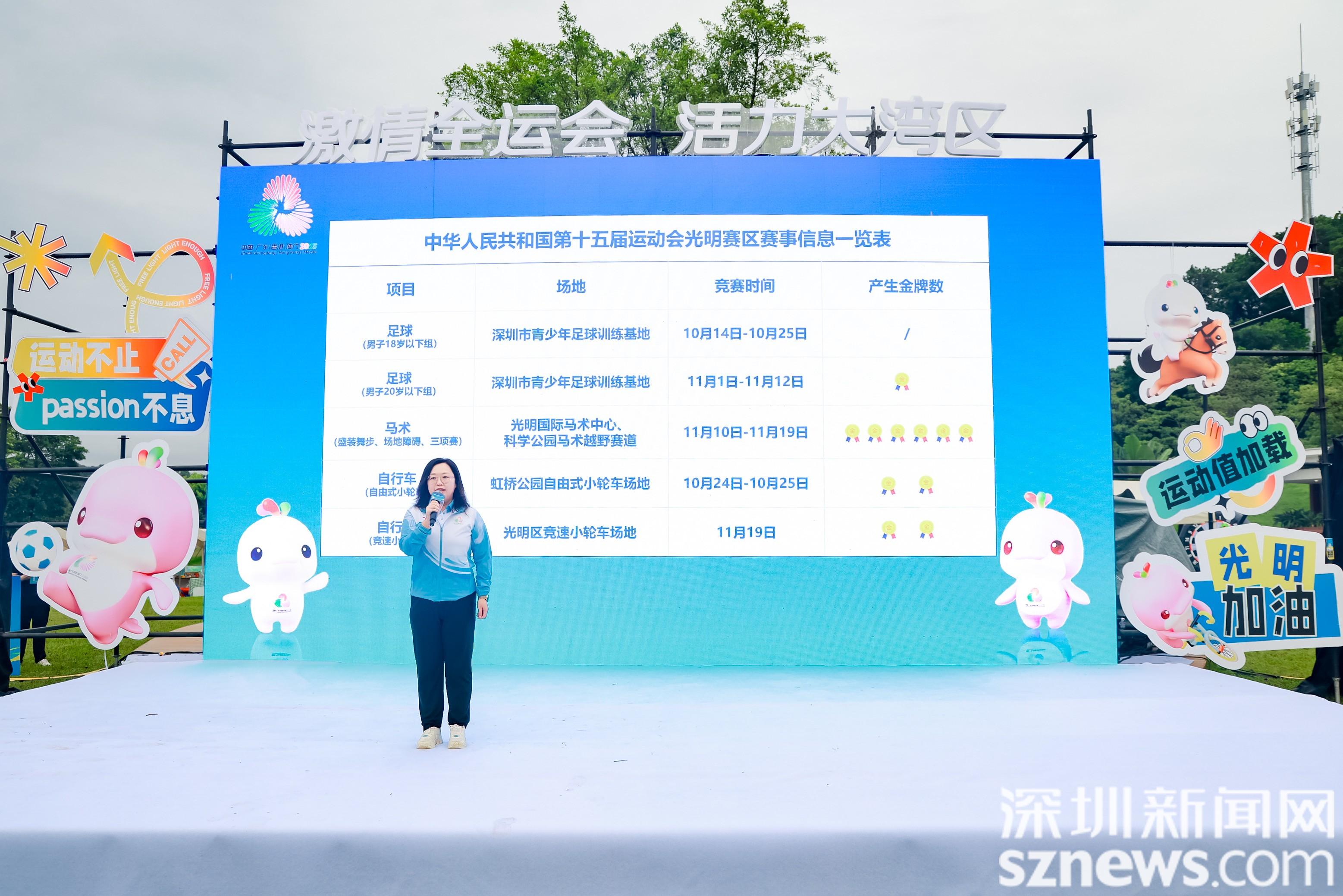 赛事发布环节干货满满,作为赛事的重要承办地,光明区为赛事量身打造了专属场馆,并将承办足球、马术、自行车三大项目,下设的7分项、12小项竞技赛事将在此精彩上演,汇聚成动人的运动交响;运动从不止于赛场的激烈角逐,更藏在街头巷尾的全民运动热潮里,活动现场,光明区的四大场馆轮番介绍体育场馆特色服务和精彩纷呈的暑期活动,让运动触手可及,点燃全民热情;"骑遇光明"骑行径正式发布,它让骑行不再只是单纯的运动,让骑行成为可以触摸城市温度、邂逅山水诗意的生活方式。