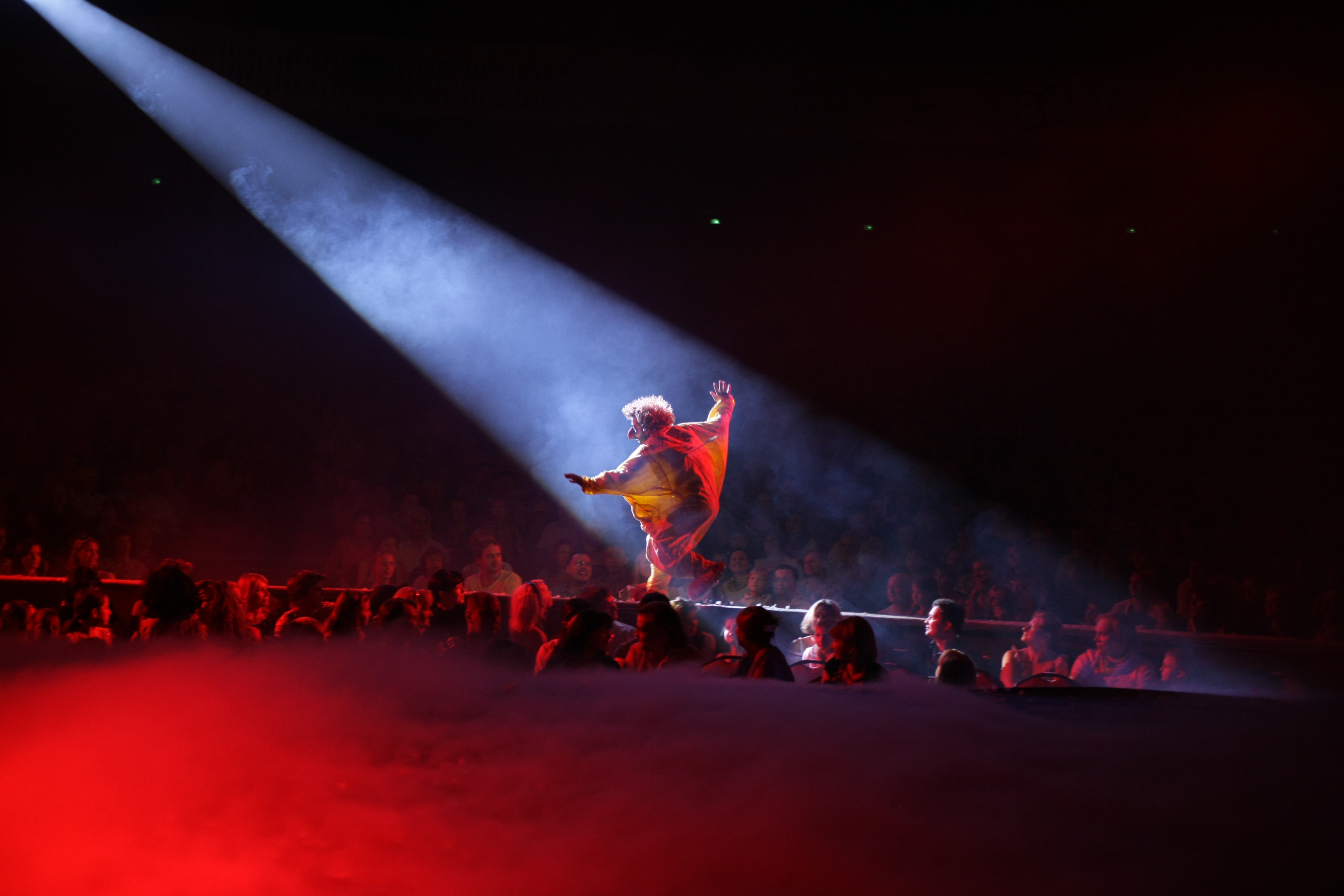 《斯拉法的下雪秀》以“雪”为媒介,构建出一个充满想象力的奇幻世界。剧目中6000万片远道而来的定制雪花片、1800平方米的巨型蜘蛛网、直径2米的彩色大气球,舞美装置最远吹雪距离长达25米,所有的演出道具都必须要从8022公里外的法国空运而来,重量加起来可达500斤。共同编织出一场震撼人心的视觉奇观。观众不仅能在剧场内亲身感受“暴风雪”扑面而来的刺激,还能通过与小丑的互动游戏,如传递彩球、触摸雪花,瞬间回归童年纯粹的快乐。