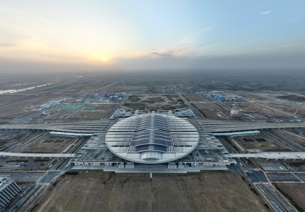 雄安站是雄安新区开工建设的首个重大基础设施项目,2018年12月1日启动建设,历时24个月建成,总建筑面积47.52万平方米,站场规模13台23线,采用水滴状椭圆造型设计,呼应新区水文化。