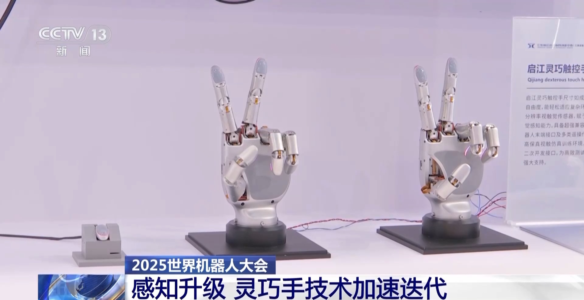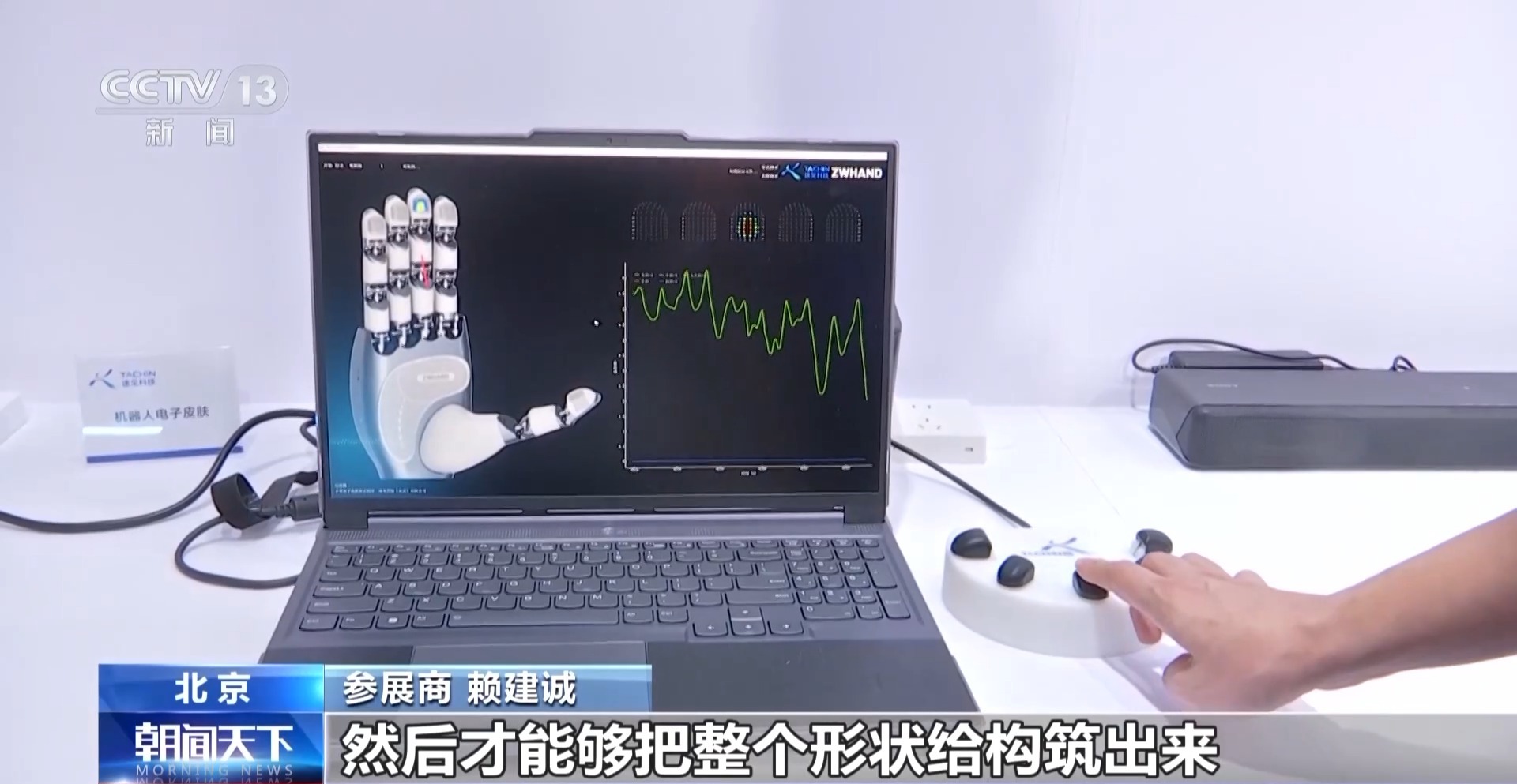 总台央视记者 张春玲:这是这次展会上亮相的一个全新的触觉模型,我们可以看到当这个机器手抓握起一个物品的时候,它只需要轻轻地抓握三次,就可以在这边实时生成这个物品的空间形状,而这样的一个数据能够更好地帮助机器人理解真实的物理世界。