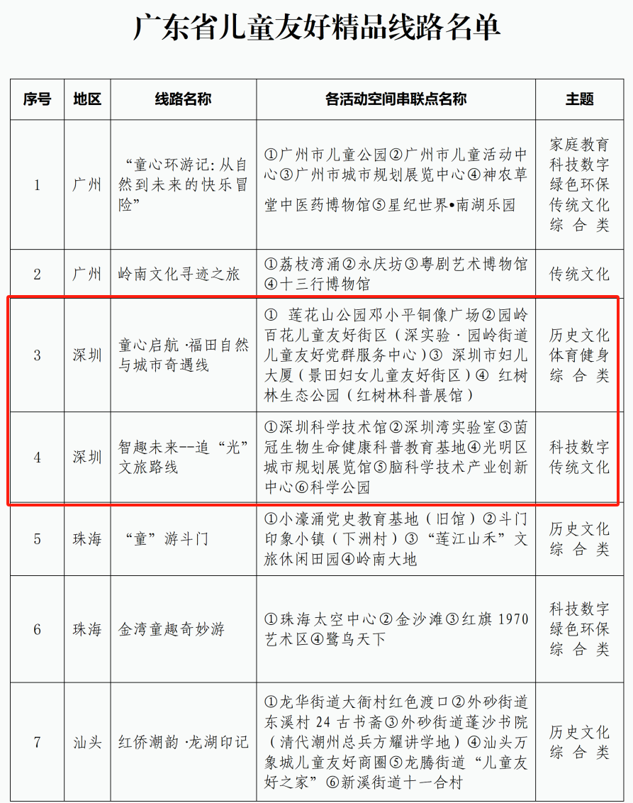 ●深圳2条线路入选广东儿童友好精品线路。