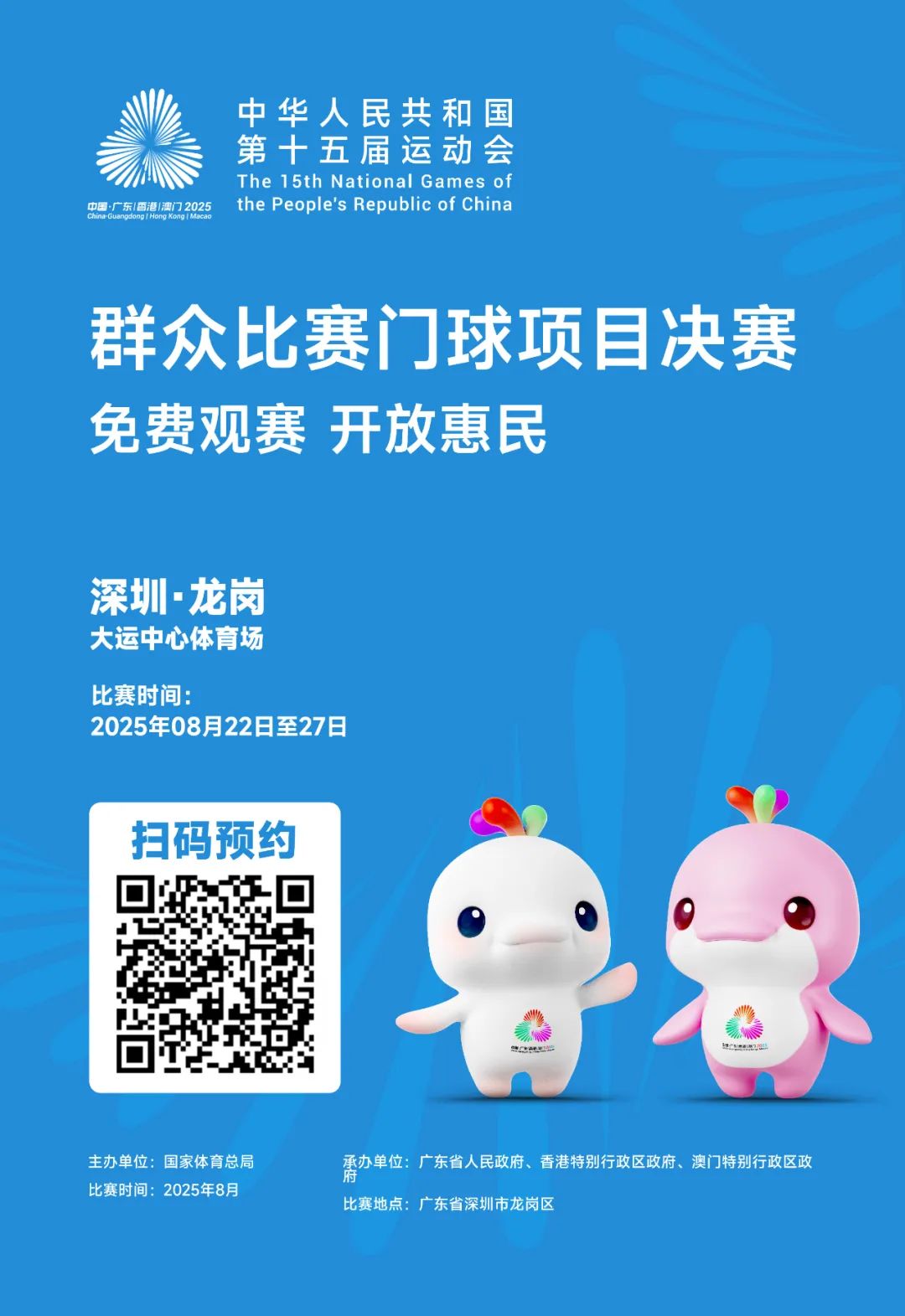 ● 龙岗:中华人民共和国第十五届全国运动会群众赛事门球决赛将于2025年8月22日至8月27日在深圳大运中心体育场举行。