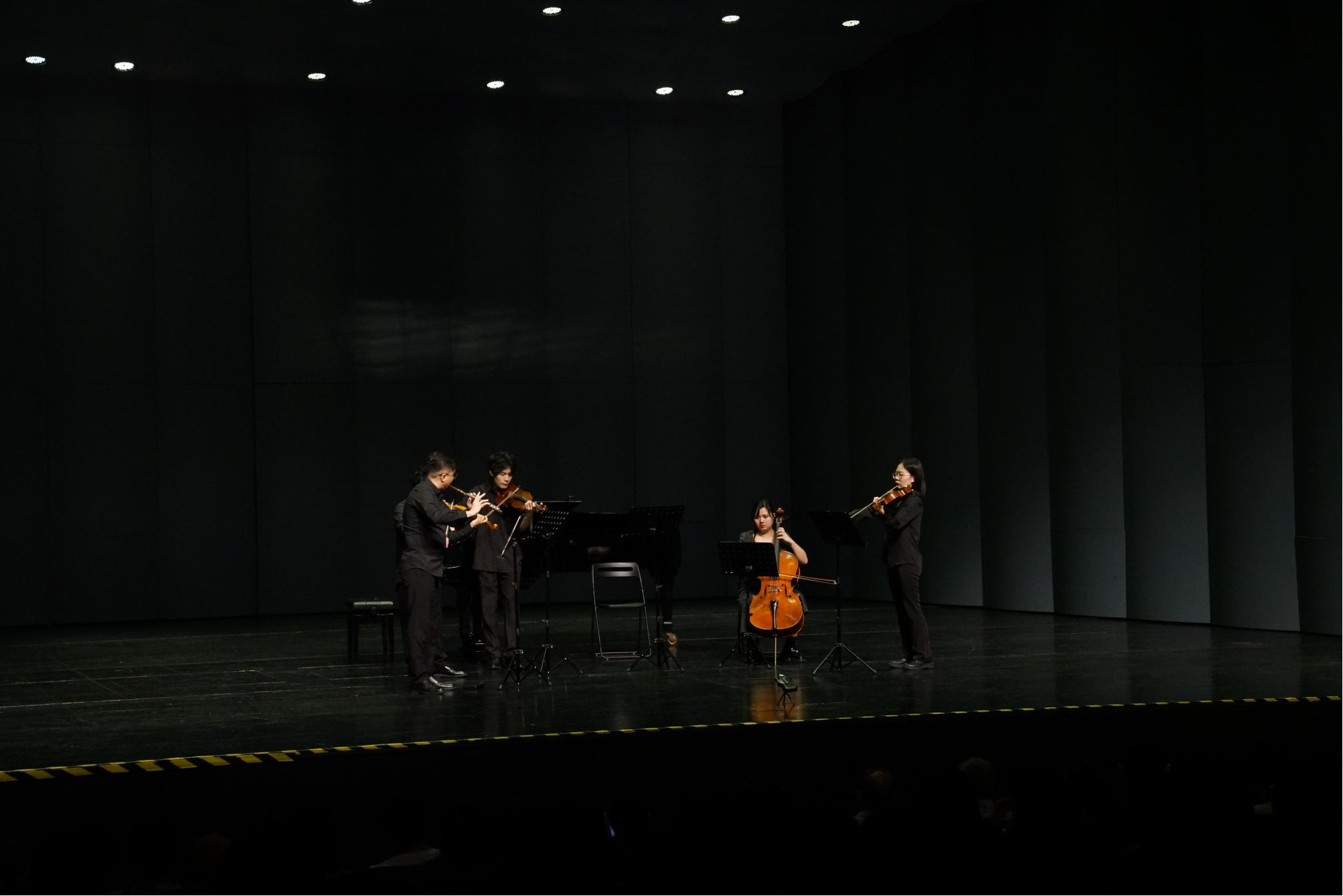 在70分钟的沉浸式聆听中,小提琴、中提琴、大提琴、长笛、钢琴的默契对话,将巴洛克音乐的标志性特征——华丽的装饰音、严谨的对位法、宏大的结构下蕴含的细腻情感——完美呈现。窗外雨声淅沥,场内音符流淌,演奏家们以精湛技艺引领观众穿越时空,沉醉于三百年前的艺术盛境。巴洛克音乐独特的优雅与深度,在这个雨夜为深圳市民带来了一份宁静而深沉的慰藉与享受。