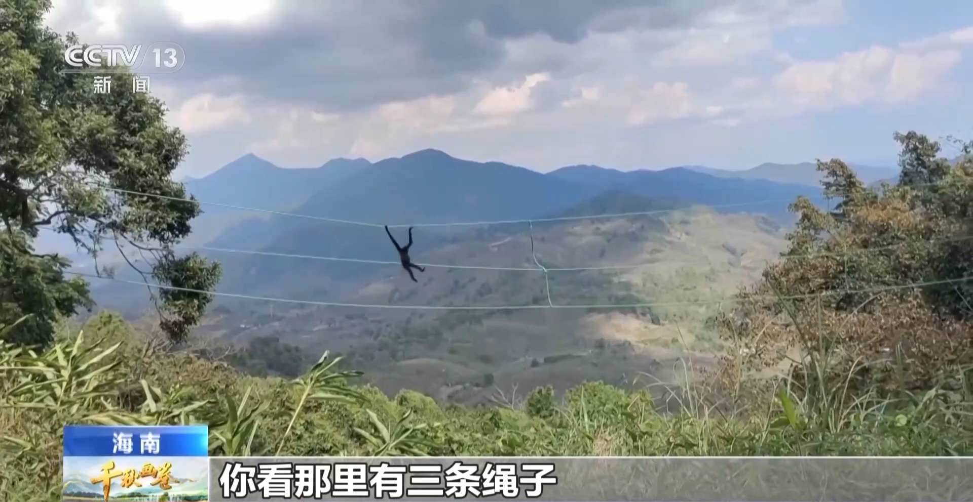 2021年,海南热带雨林国家公园启动“智慧雨林”项目,霸王岭分局搭建了28条“绳索廊道”,帮助长臂猿跨越深沟滑坡。