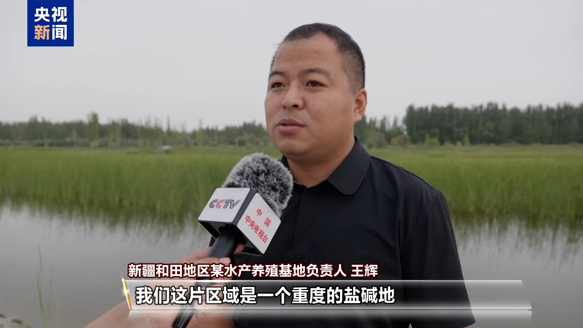 新疆和田地区某水产养殖基地负责人 王辉:我们这片区域是一个重度盐碱地,原来这块地是没有任何利用价值的。目前已经解决本地就业,人均月工资都在3600元以上。