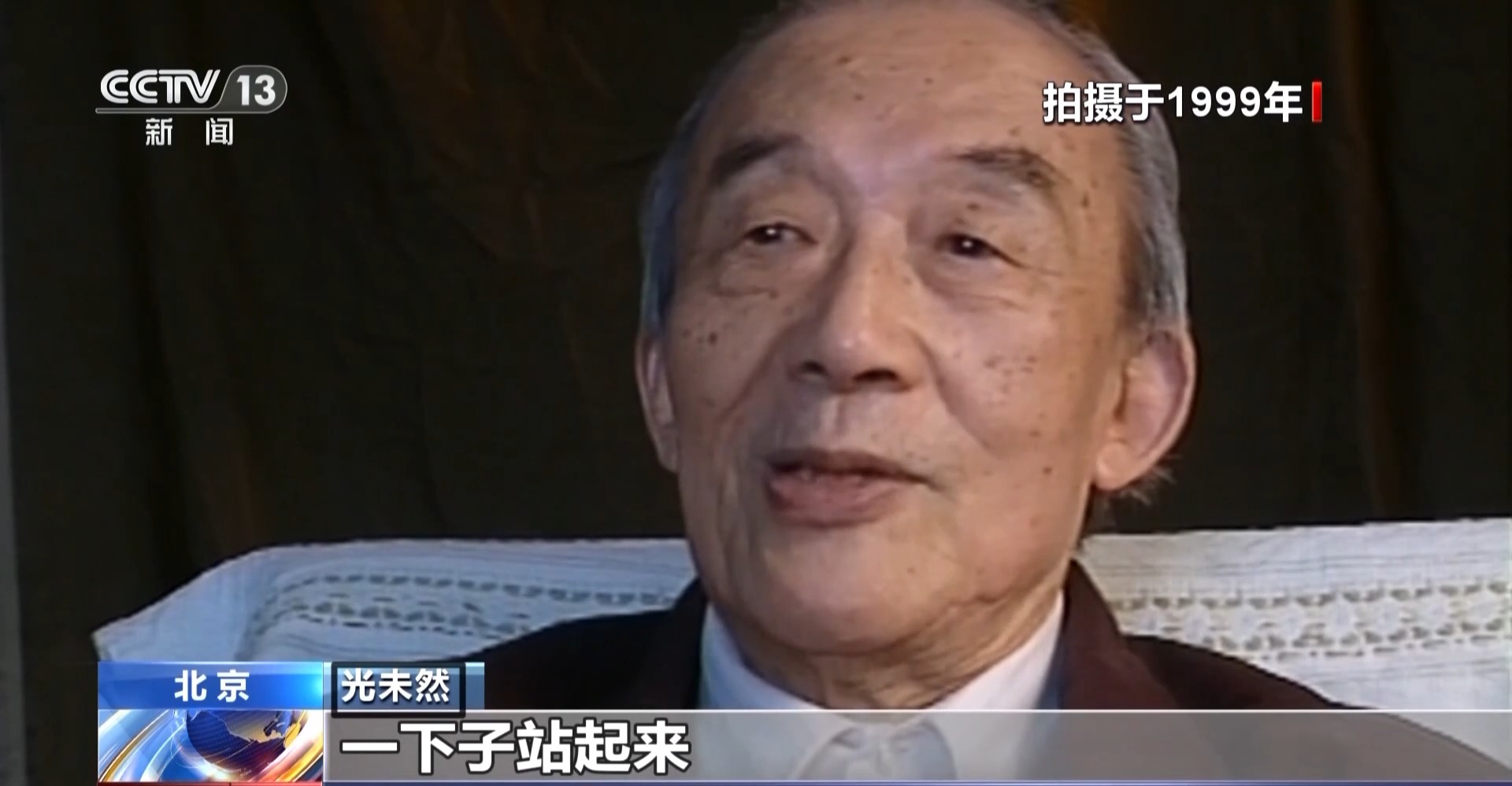光未然(1999年资料视频):星海他当时比别人还要静心地听着,听得他很兴奋地一下就站起来,大家都蹲在那里,坐在那里,一下子坐起来,一把就抓过去了歌词,我有把握写好它。