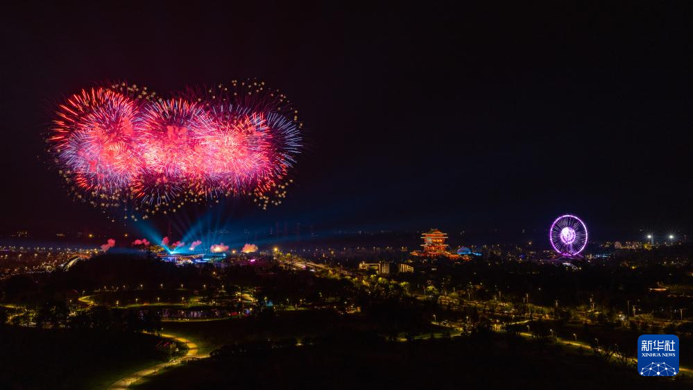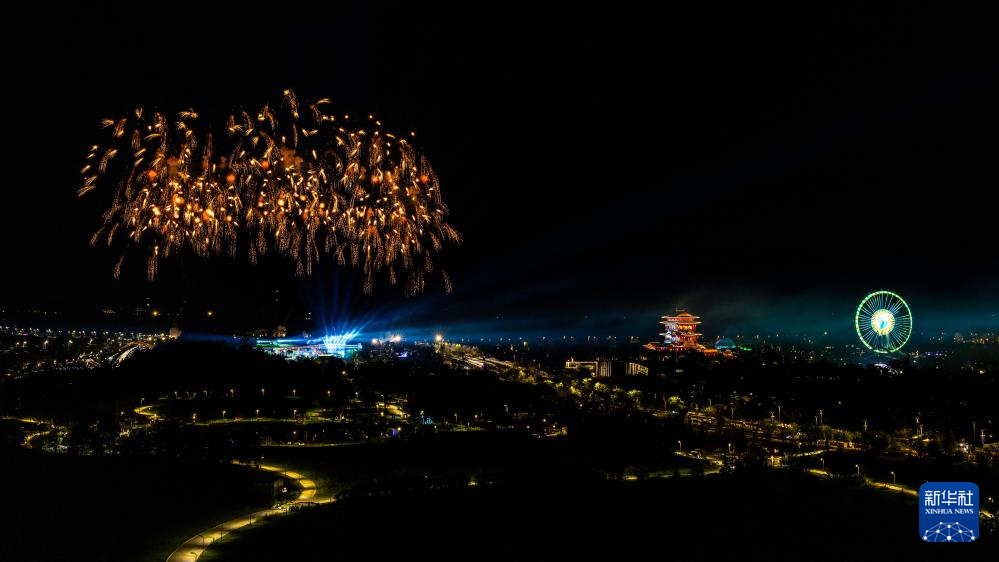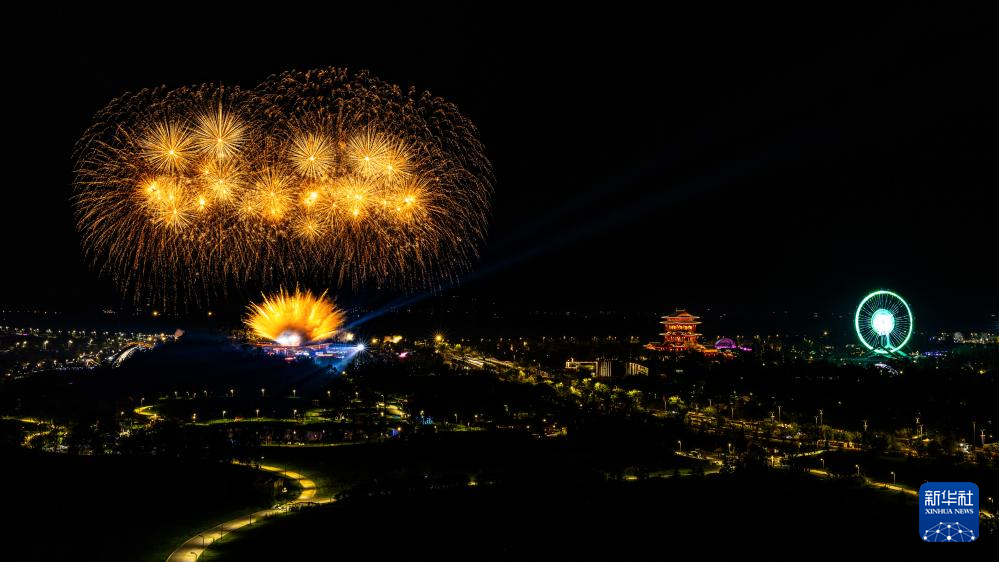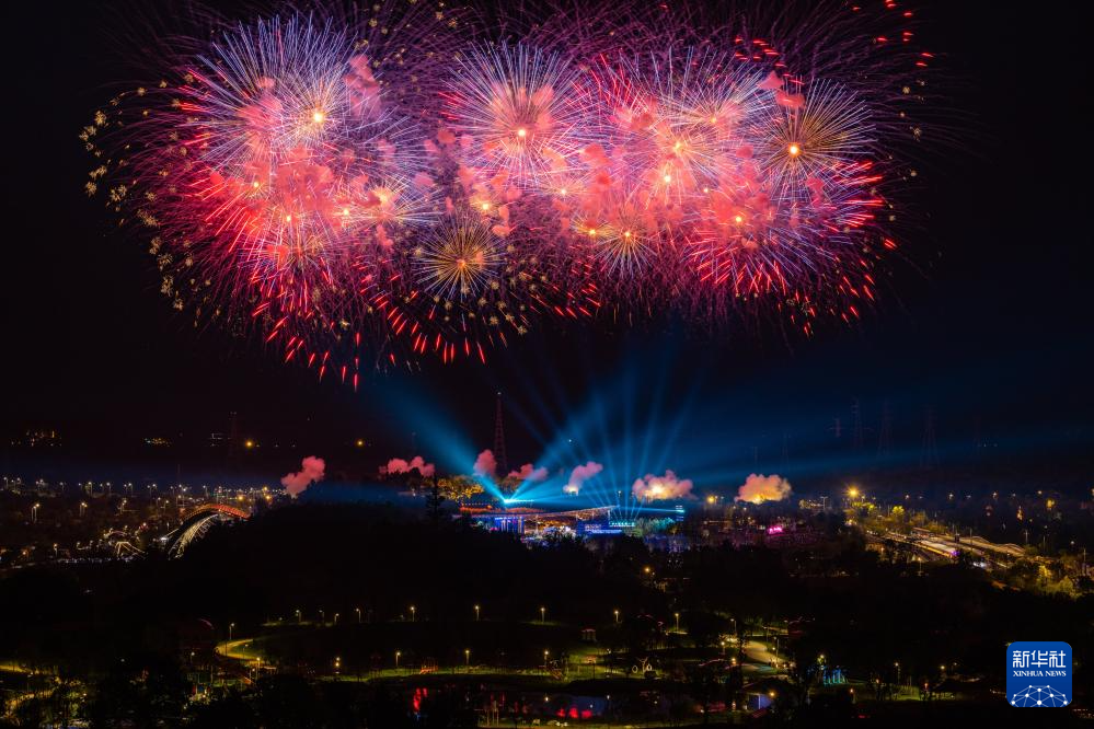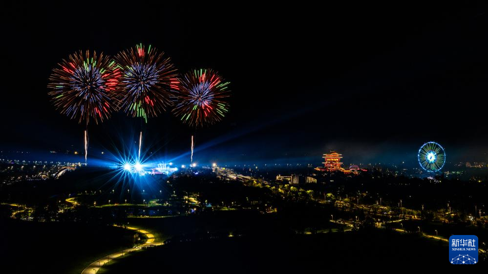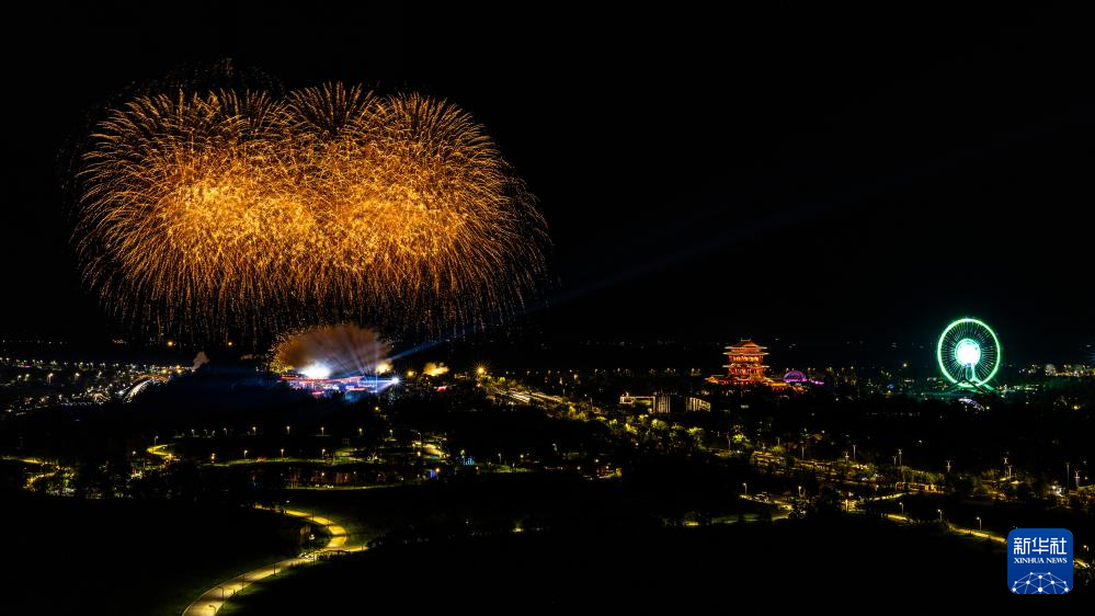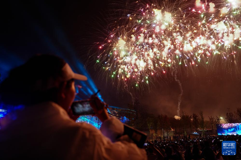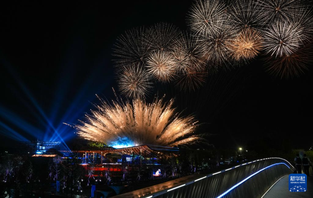 这是8月17日拍摄的闭幕式上的焰火表演。