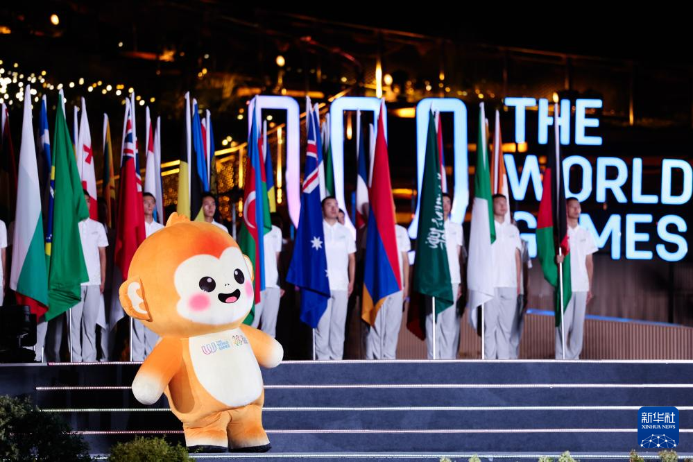 8月17日,本届世界运动会吉祥物“锦仔”在闭幕式上入场。