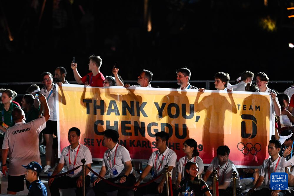 这是8月17日在闭幕式现场拍摄的感谢成都的条幅。