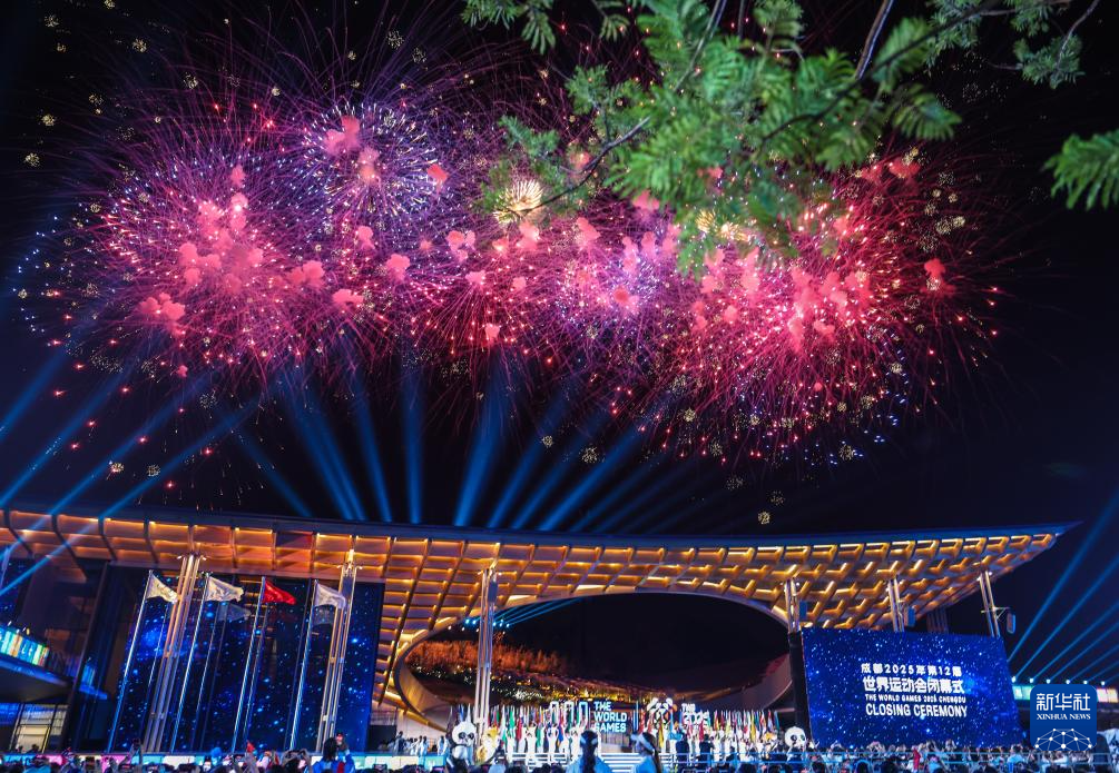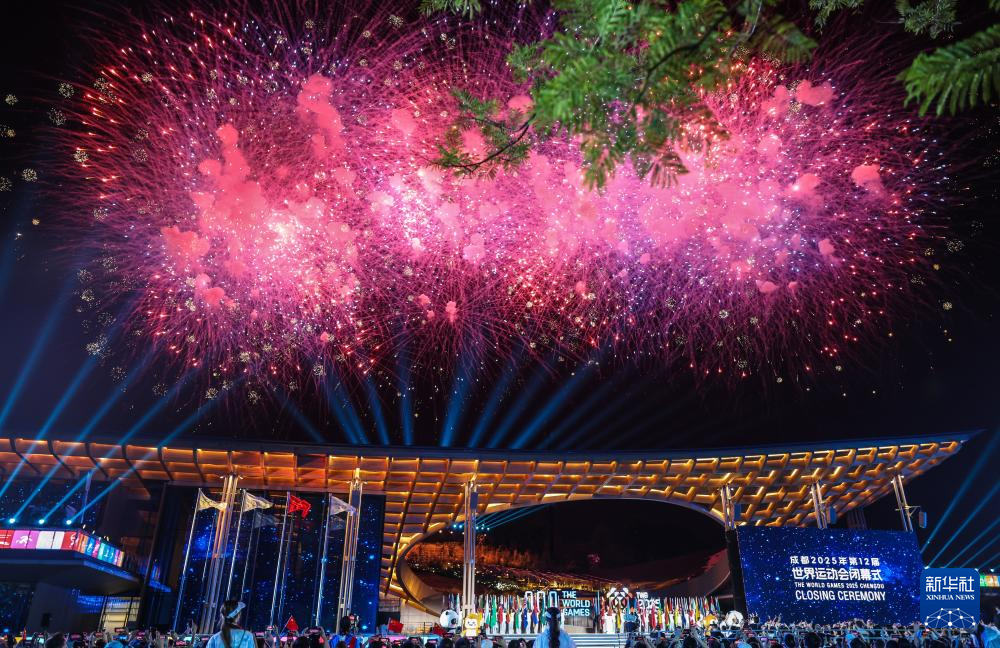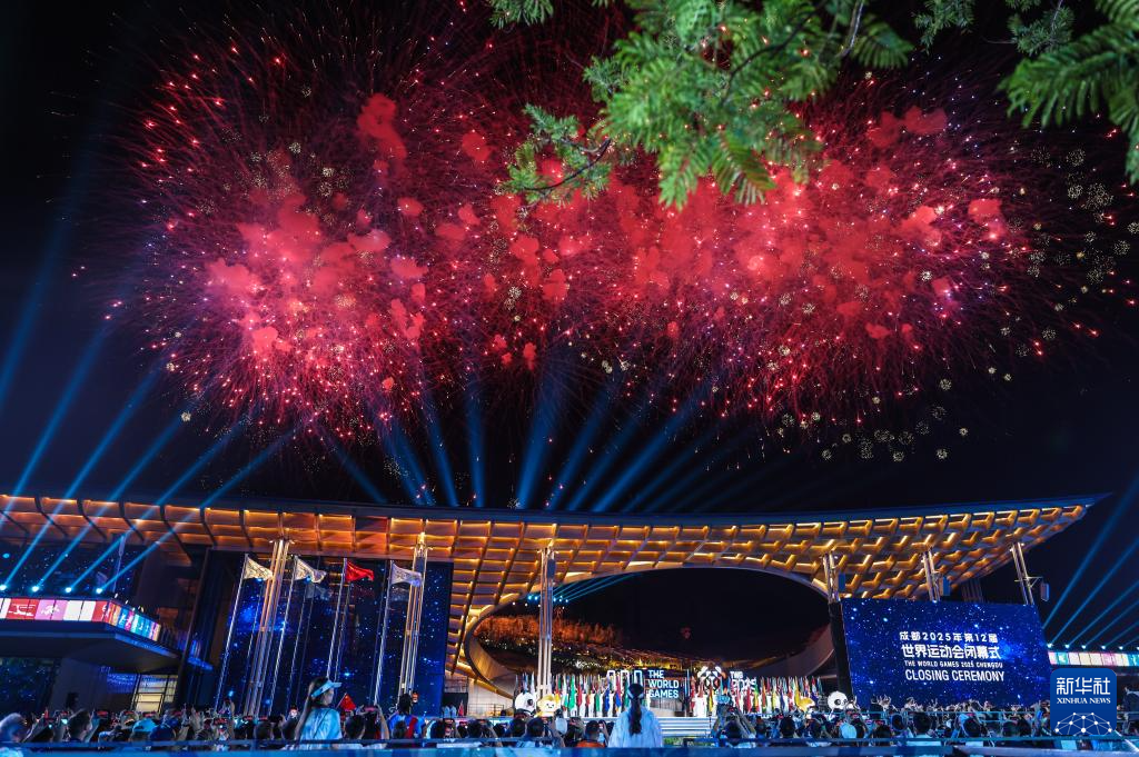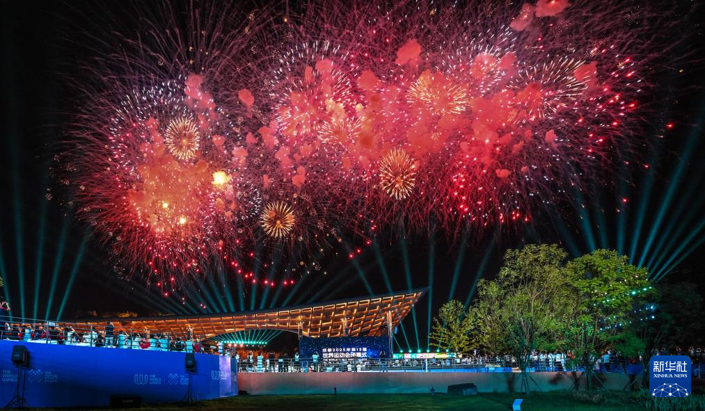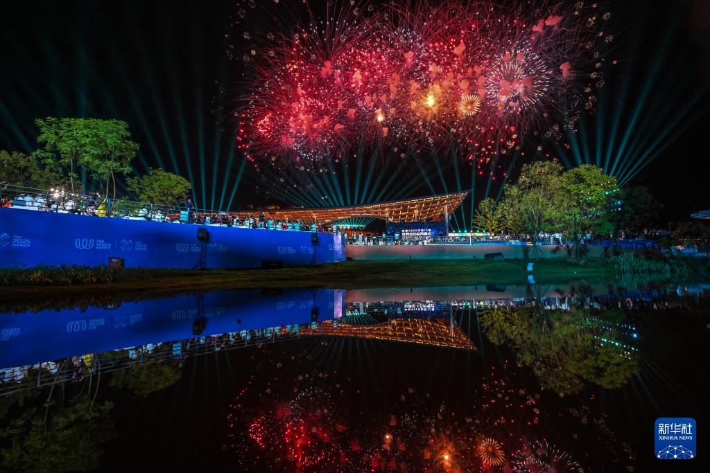 这是8月17日拍摄的闭幕式上的焰火表演。
