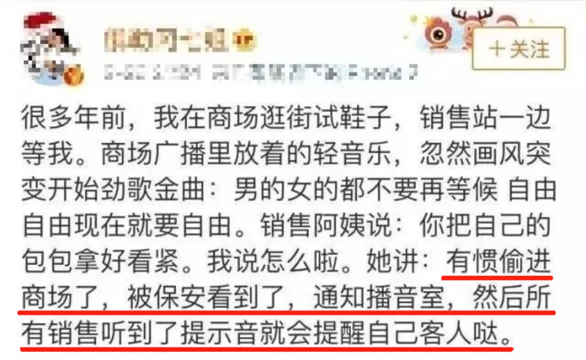 不过,在如今无现金支付普及且治安环境日益改善的今天,这种换歌暗号的方式已经很少使用了。即使真有小偷出现,商场也大多会直接进行拦截。因此,我们可以更放心地购物。
